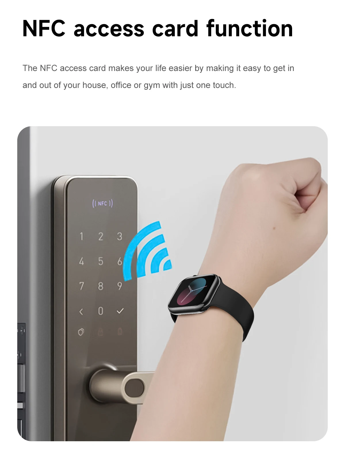 3.【NFC access card function】The NFC access card makes your life easier by making it easy to get in and out of your house, office or gym with just one touch.
