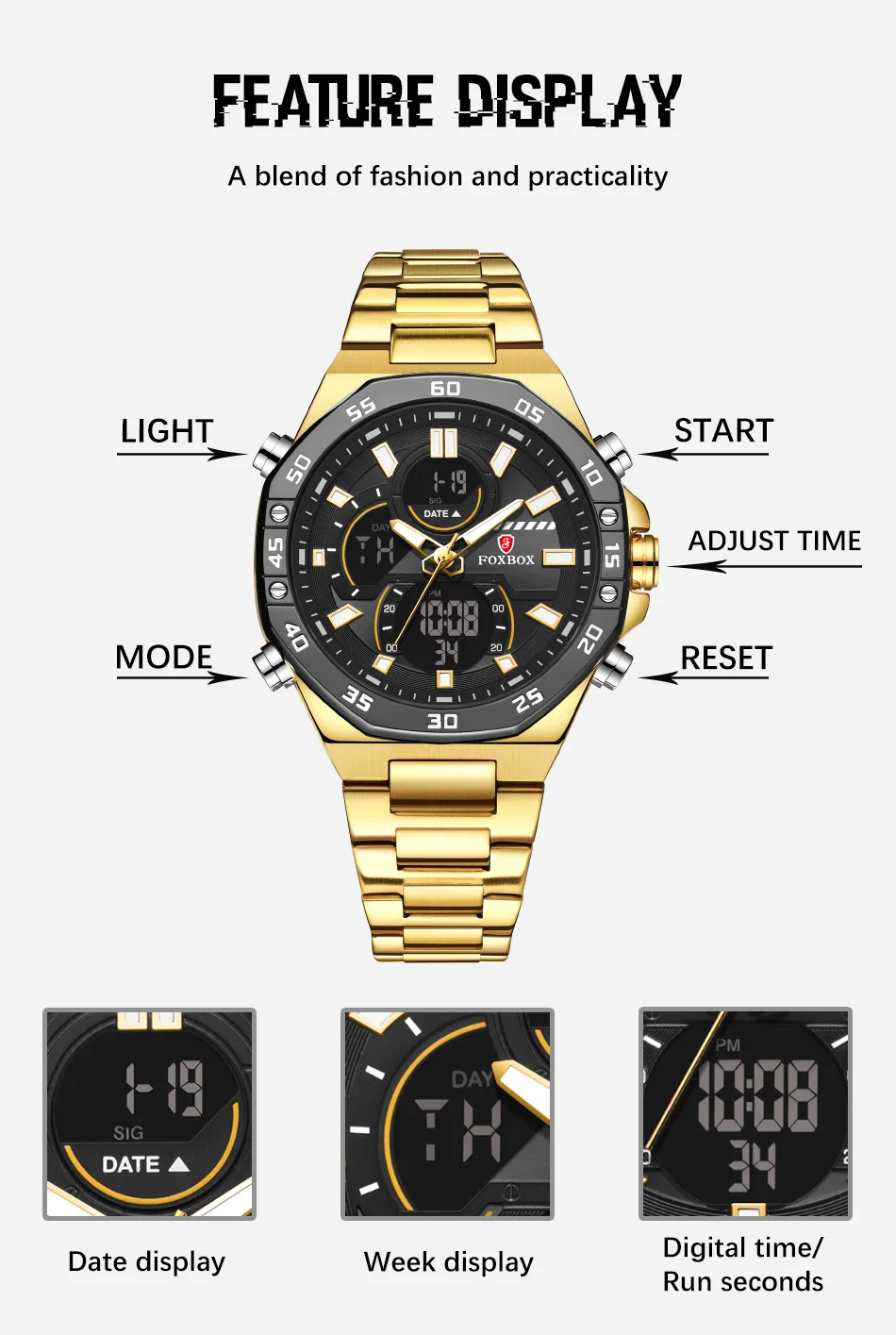 - Movement: Quartz,Dual Display,Digital