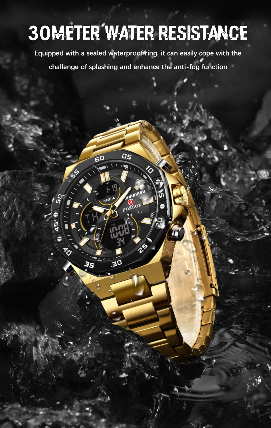 ⌚ Waterproof Watch: Waterproof to 30 meters, suitable for daily use. Splash/rain proof. No need to worry about splashes, sweat, rain or hand washing. However, please do not press any buttons in water, not suitable for hot water or swimming.