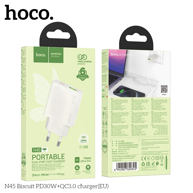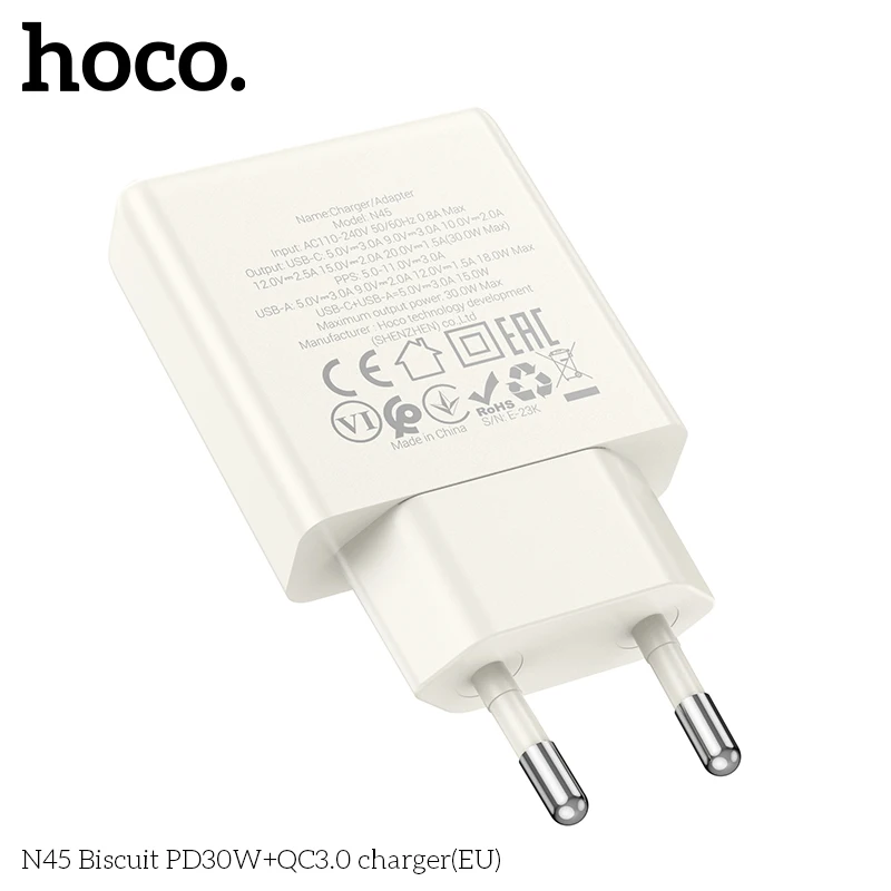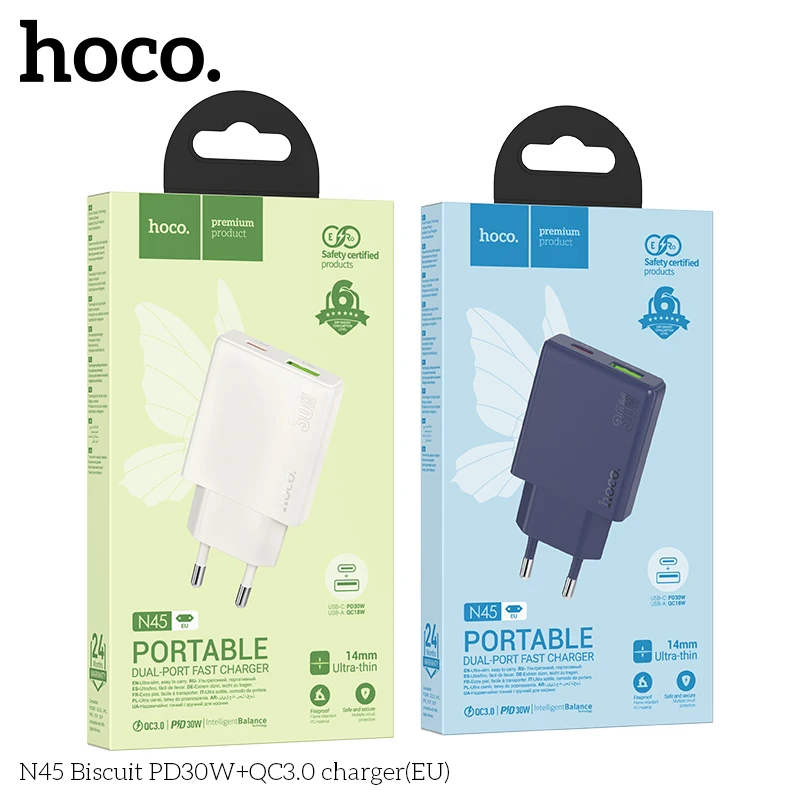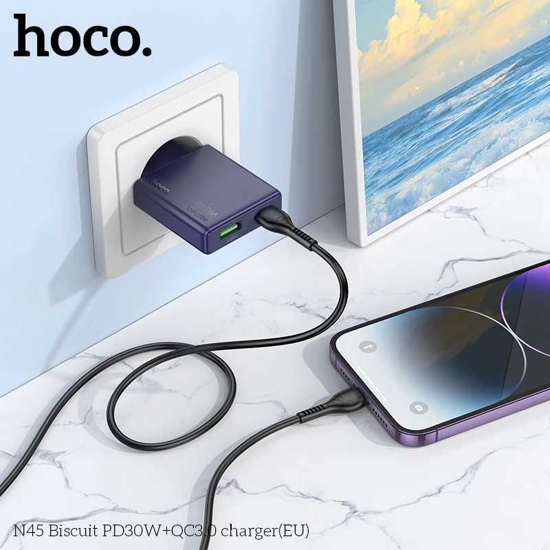 HOCO N45 30W USB A Type C Charger Quick Charge USB Fast Wall Charger For iPhone 14 Xiaomi Samsung Huawei Type C PD Phone Adapter
