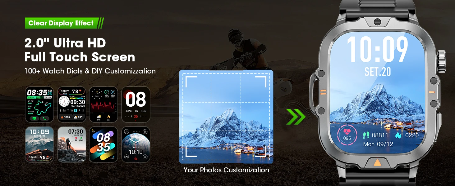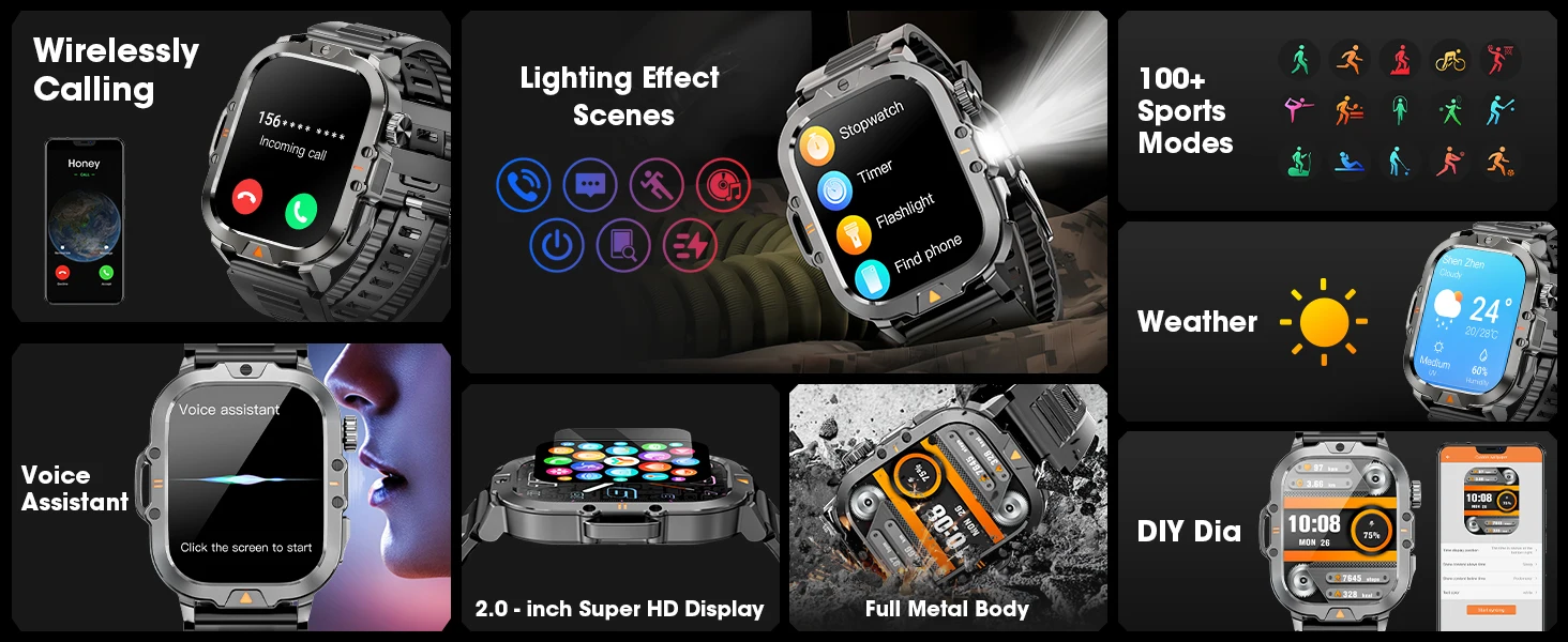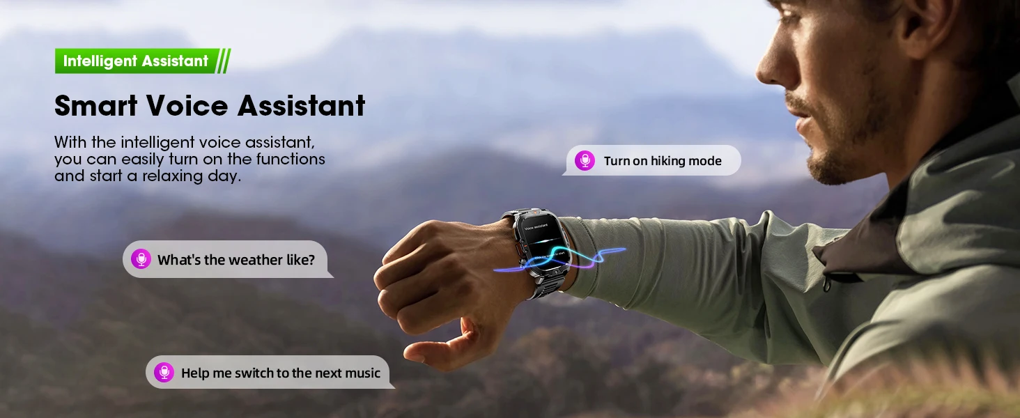 Bluetooth call, AI voice assistant, massive dial, weather forecast, sports mode