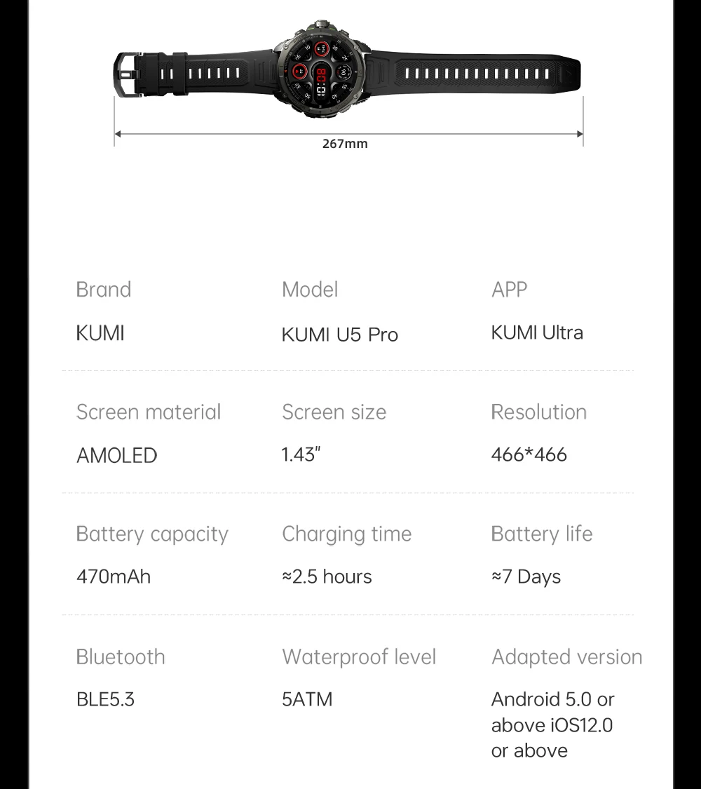 Outdoor triple-proof, explore the boundless smart watch #KUMI U5 PRO