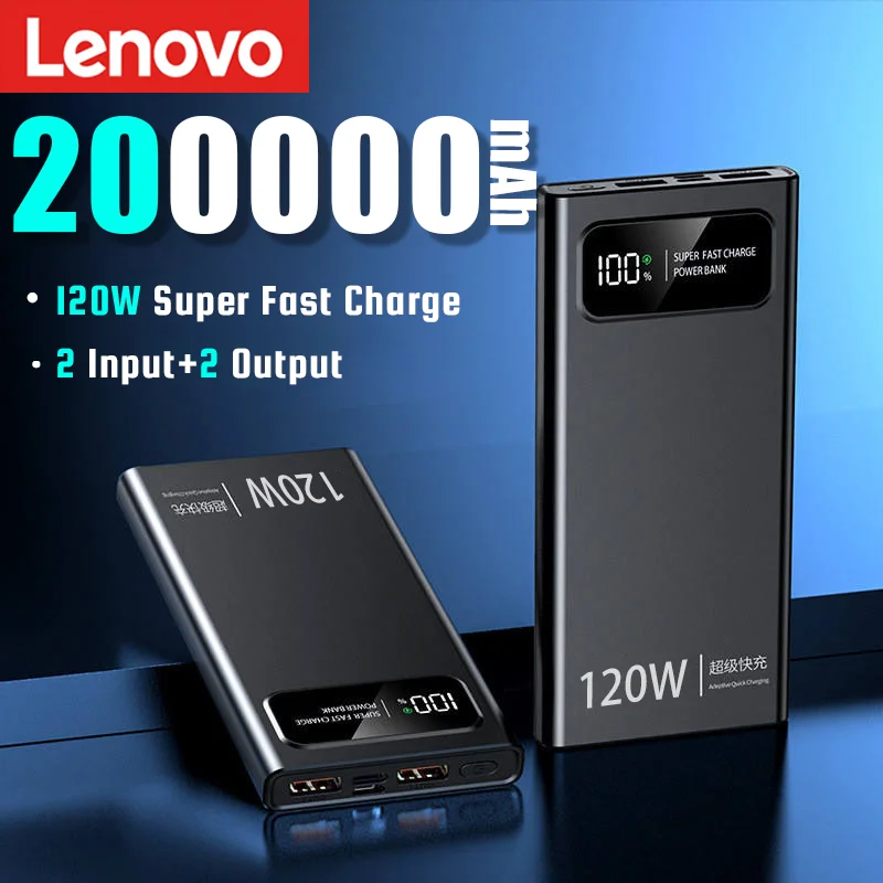 Lenovo 120W Super Fast Charging Power Bank 200000mAh Ultralarge Capacity Mobile Power External Battery For Iphone Xiaomi Vivo