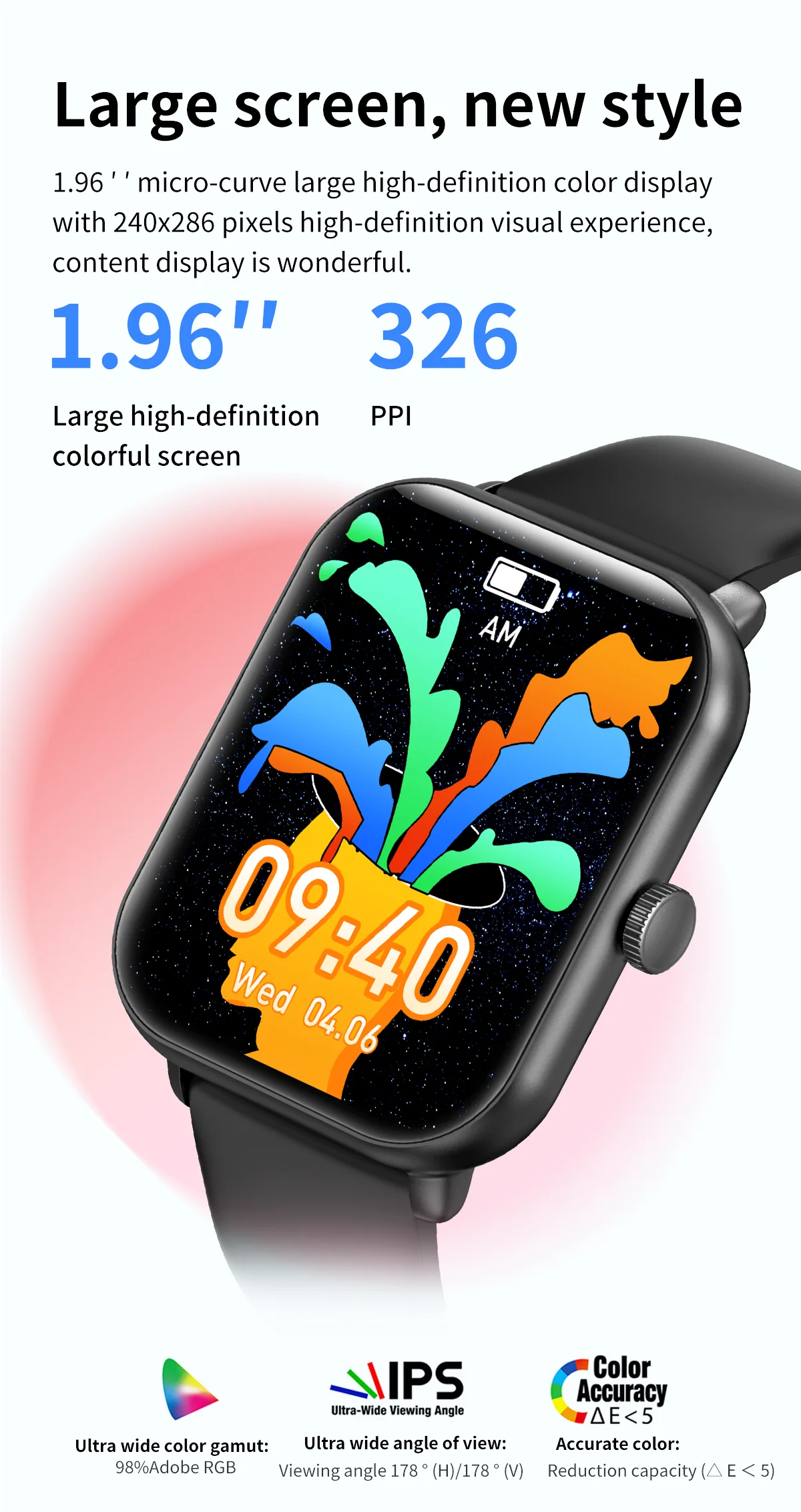 Display specifications: 1.96-inch square color screen resolution 240*284