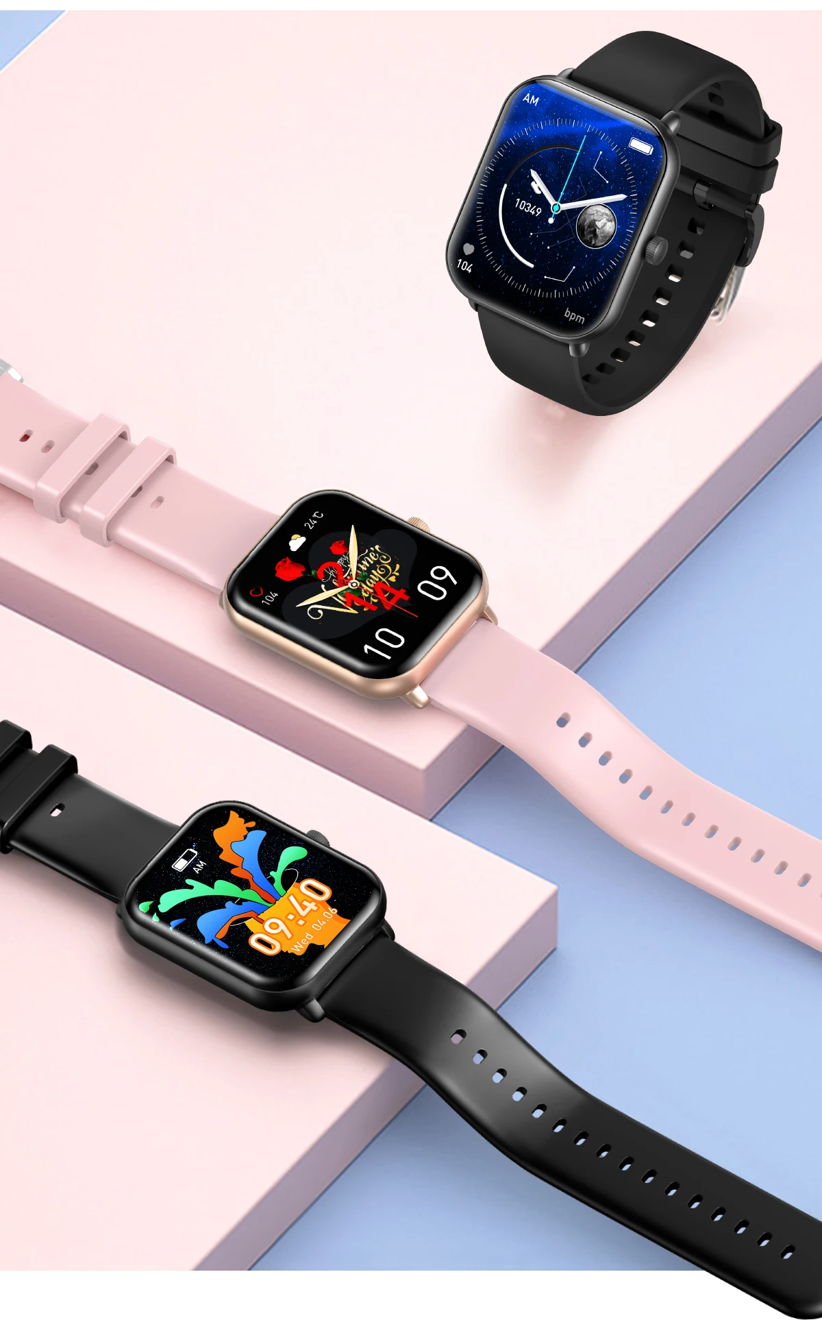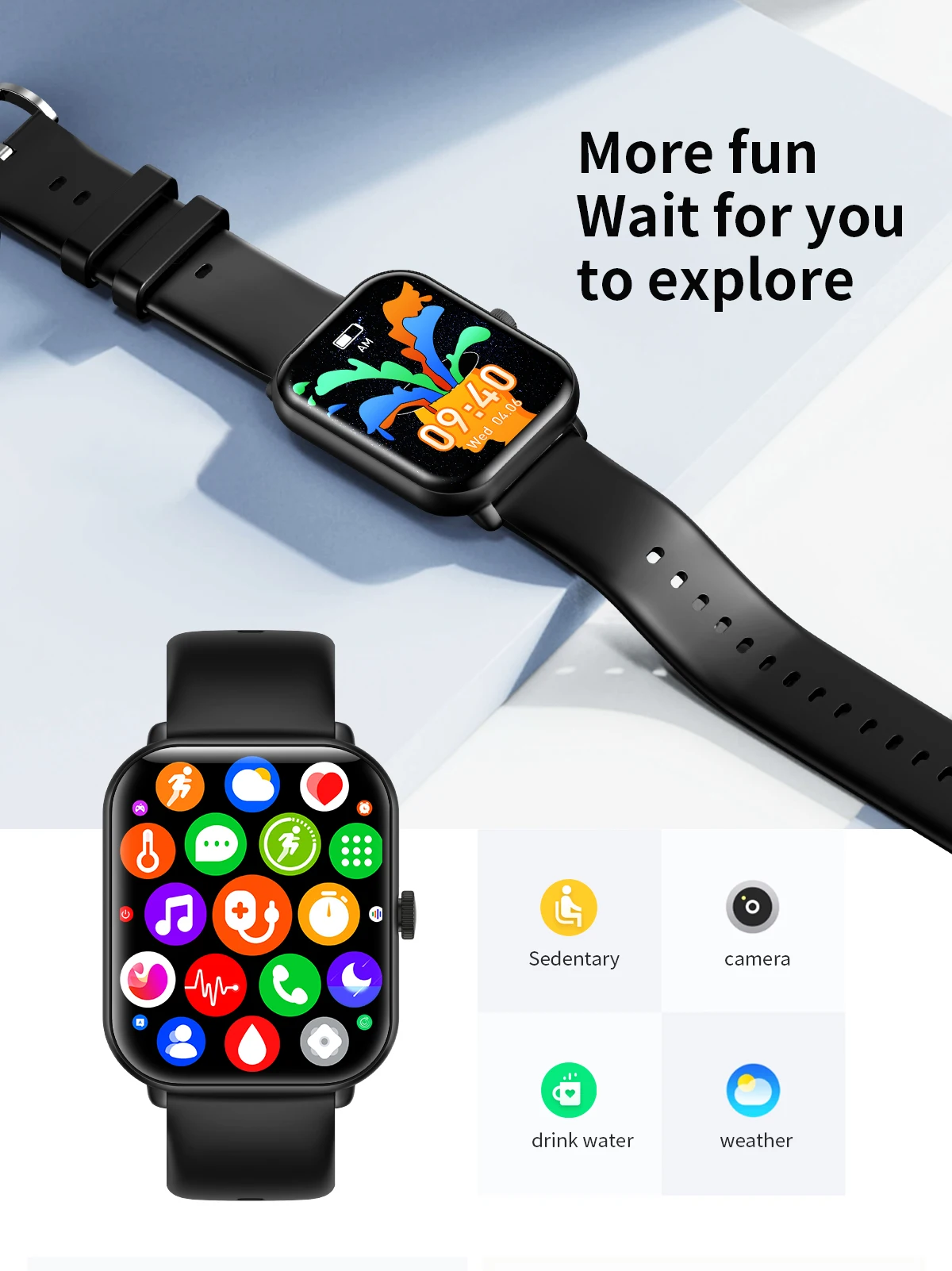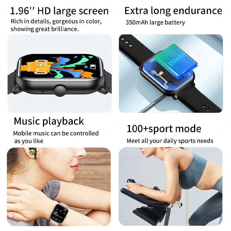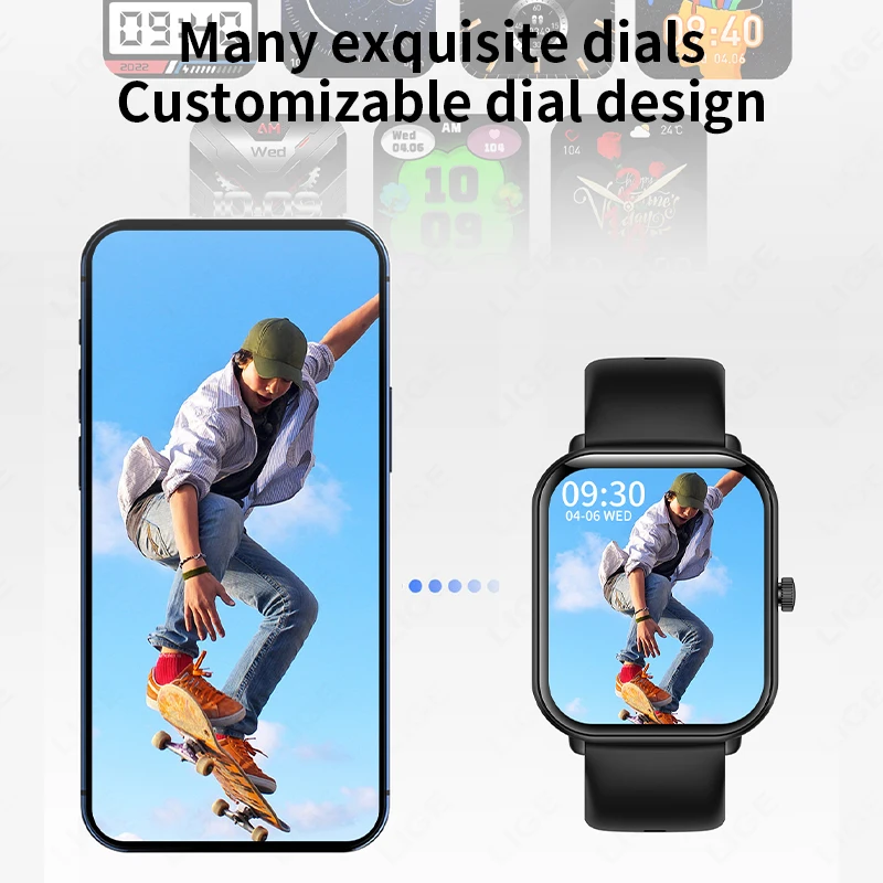 Other functions: Customized dials, massive online dials, turning the wrist to light up the screen, time display, remote photography, theater mode setting, search bracelet, WeChat sports, support APP over-the-air upgrade, multi-sport mode