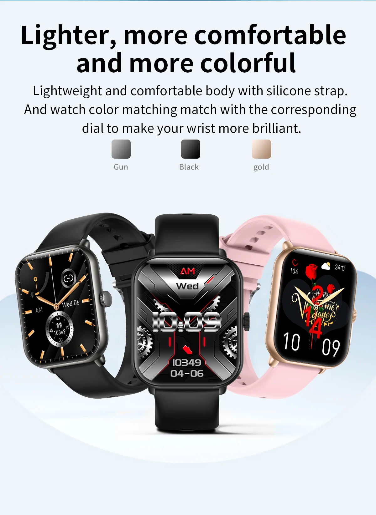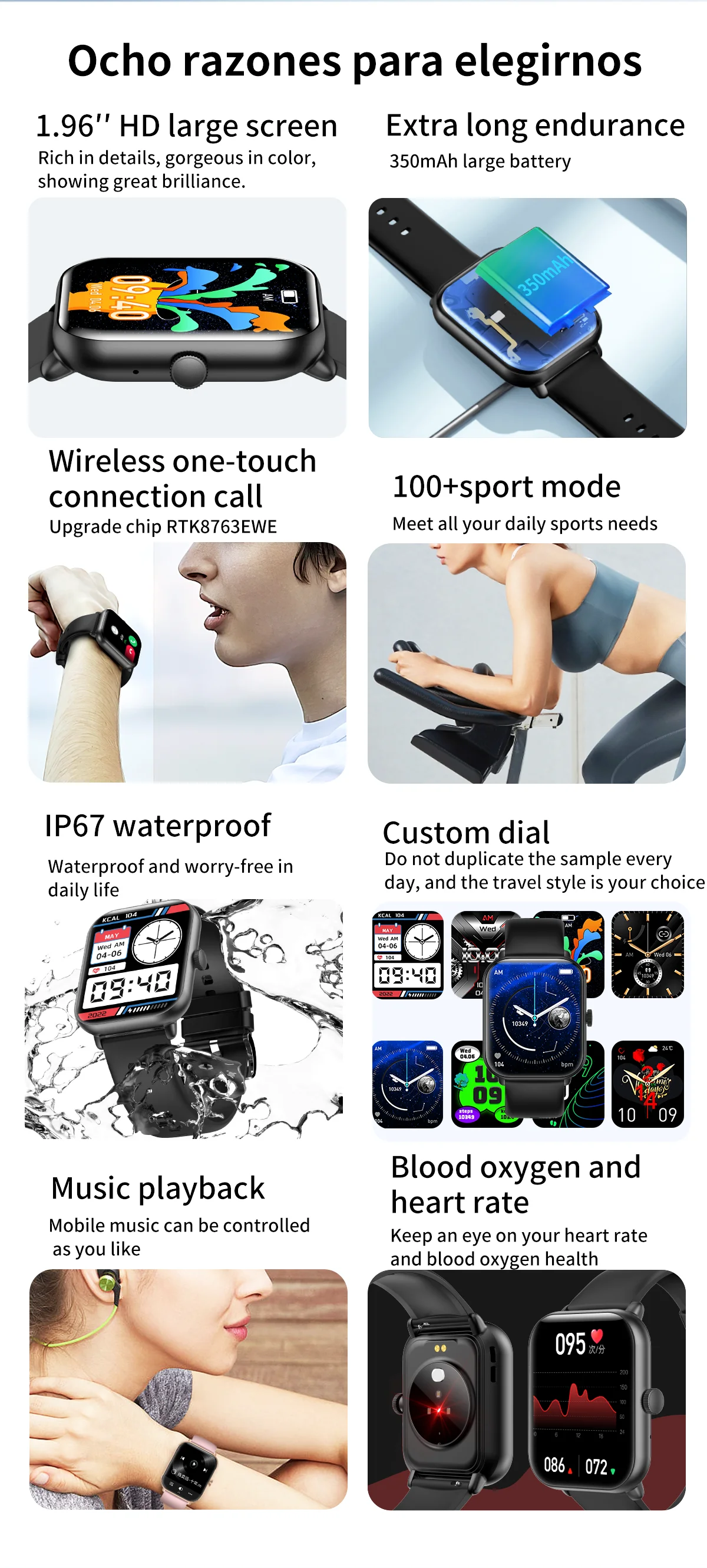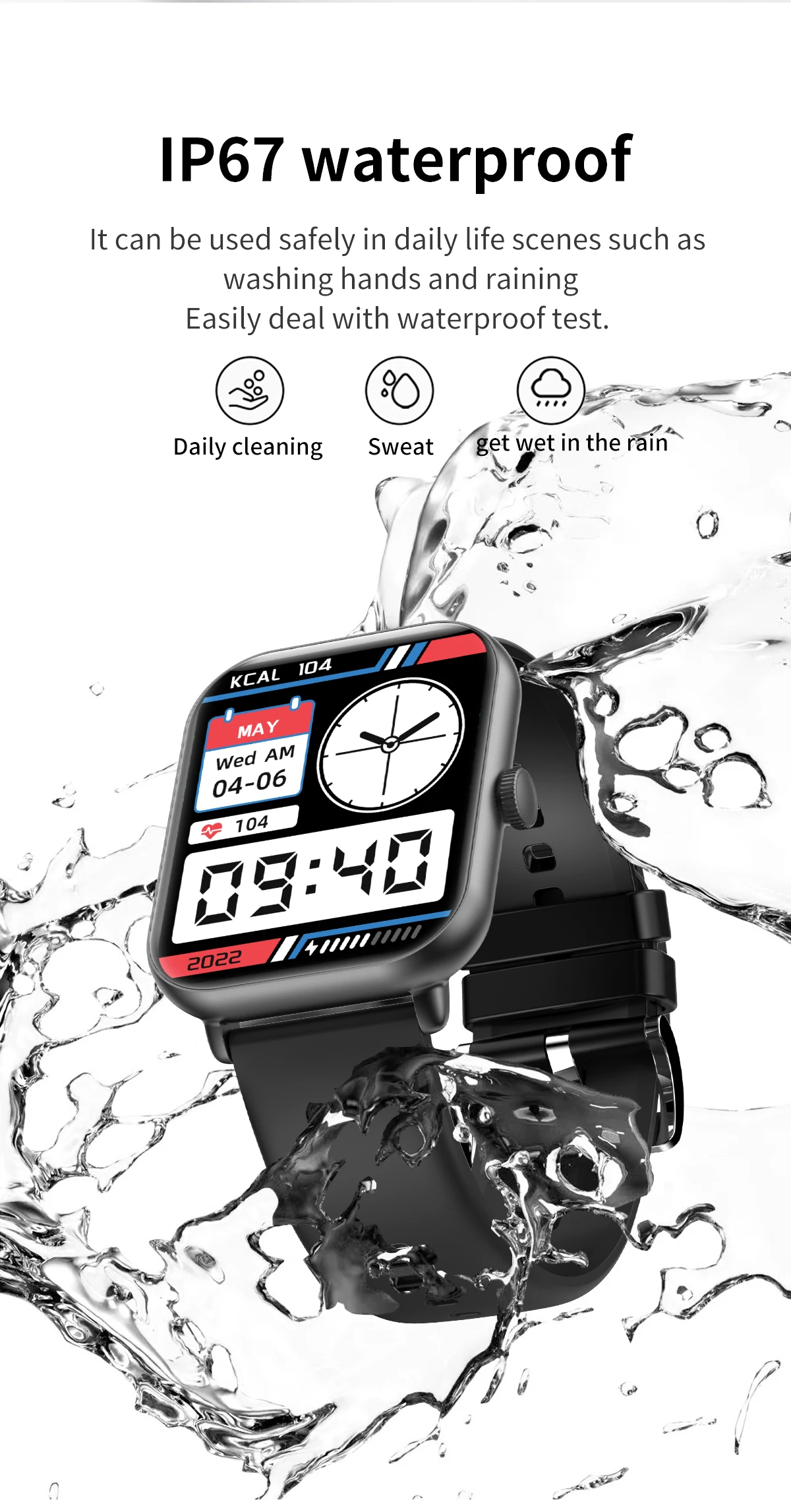 Other functions: Customized dials, massive online dials, turning the wrist to light up the screen, time display, remote photography, theater mode setting, search bracelet, WeChat sports, support APP over-the-air upgrade, multi-sport mode