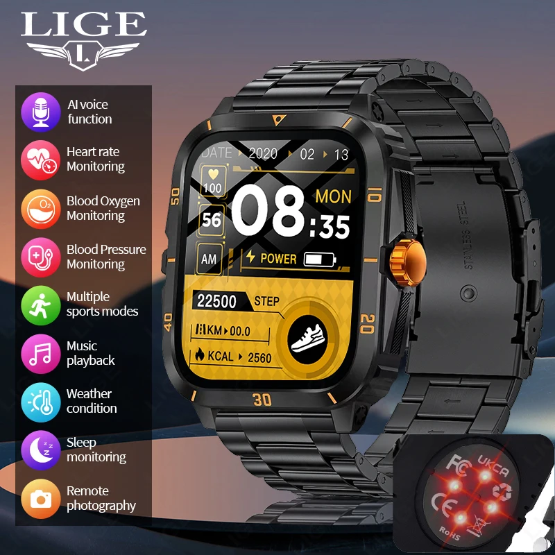 LIGE 2024 Smart Watch Men For XIAOMI HUAWEI New Bluetooth Call Health Monitoring AI Voice Sports Fitness Waterproof Smartwatch