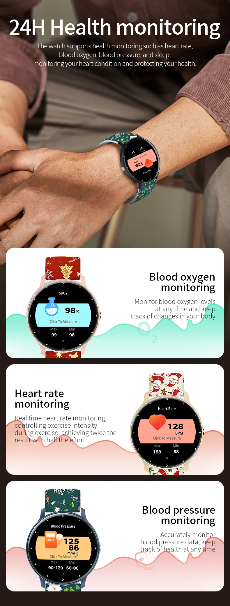 Information Reminder There are function enable switches on the APP side (incoming calls, text messages, Wechat, QQ, Facebook, Twitter, LinkedIn, WhatsApp, Line, Instagram, Snapchat, Skype and other mobile applications) and events such as sitting, alarm clock, drinking water, taking medicine, etc. Information reminder, alarm clock, photo, raised wrist screen, sedentary reminder, stopwatch, countdown, search for mobile phone, bracelet brightness adjustment, bracelet screen duration adjustment, step counting, heart rate data synchronization APP support, exercise, mileage, calories, Steps, sleep, total sleep, deep, light sleep time, history record, heart rate, blood pressure, sleep, exercise