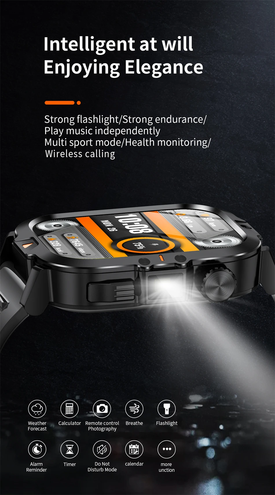 - Function: Passometer,fitness tracker,sleep tracker,Message Reminder,Call Reminder,Answer Call,Dial Call,Push Message,Big Three Needles,Chronograph,Alarm Clock,Calorie Counter,week,Month,Heart Rate Tracker,Calendar,Countdown