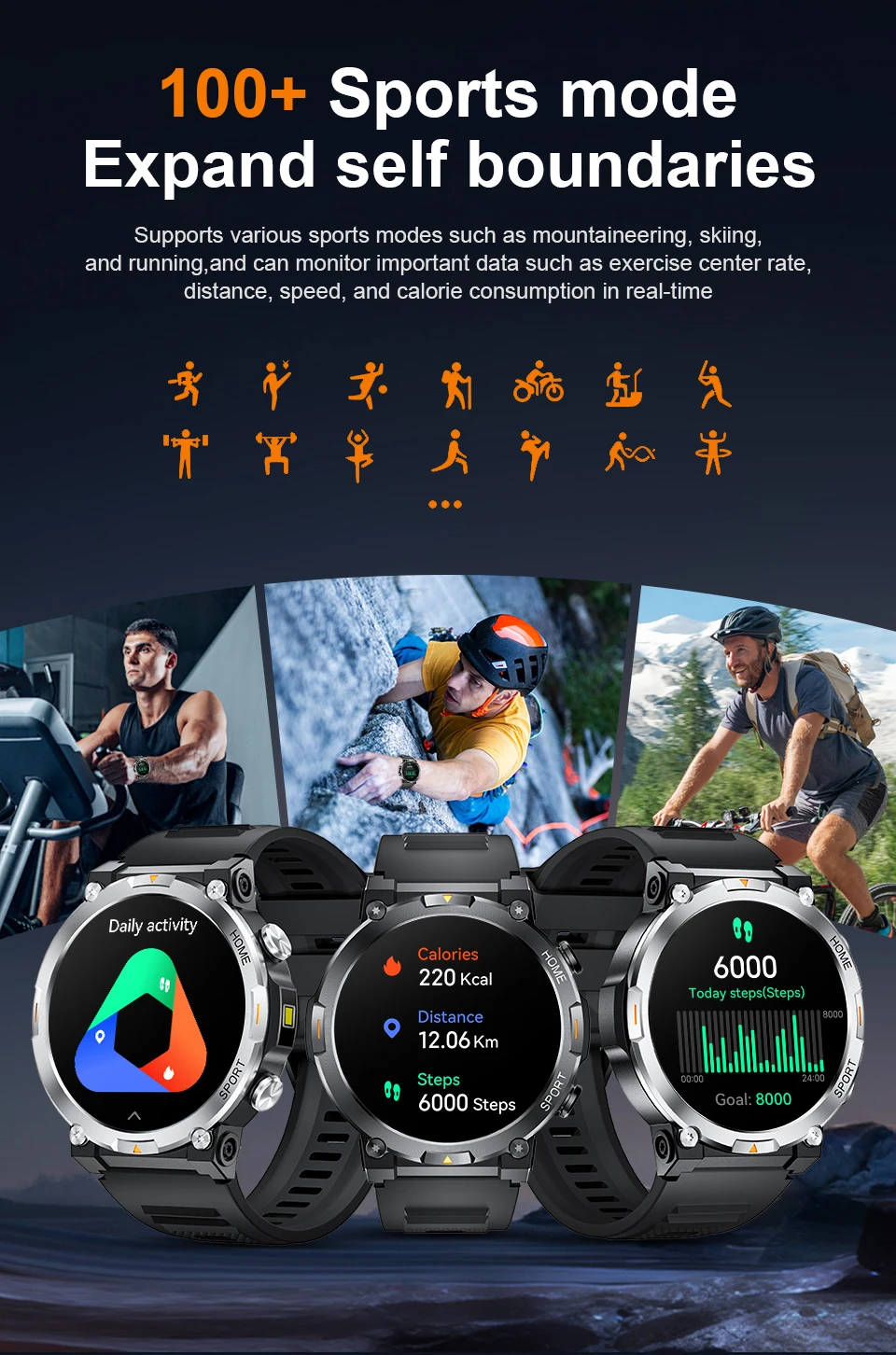 100+Sports modes:Outdoor sports watch supports up to 100+ sports modes tailored for who love sports, including Running, Climbing, Cycling, Basketball, etc.