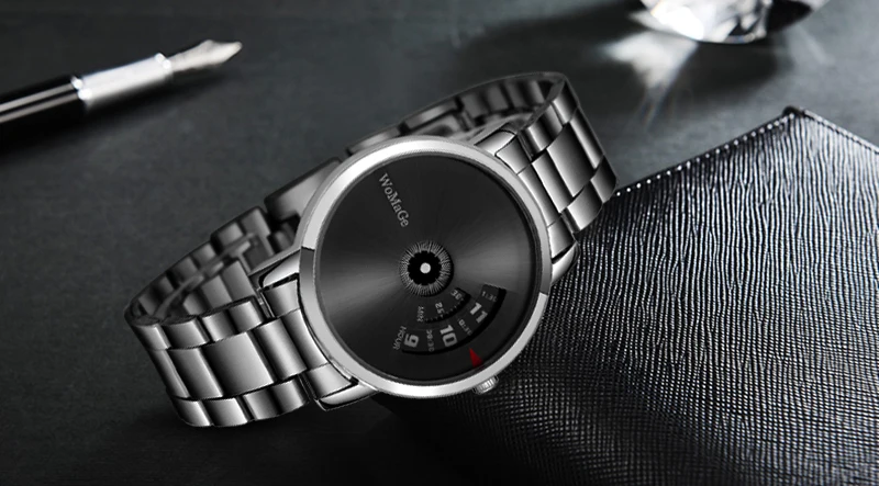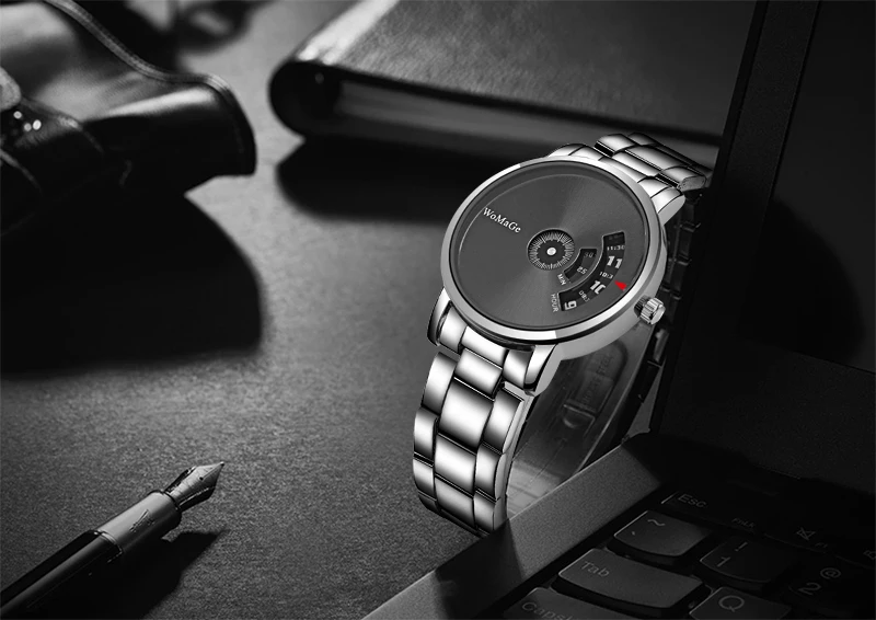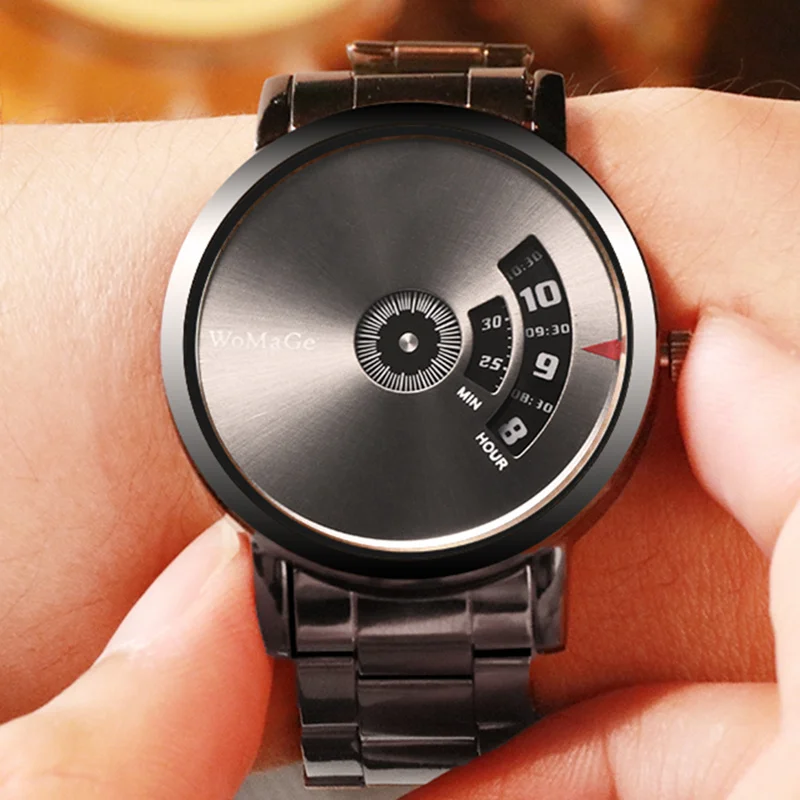 Men Watch black stainless steel Quartz Unique watches mens WoMaGe Brand Turntable Ko Saati Business Relogio Masculino Male reloj