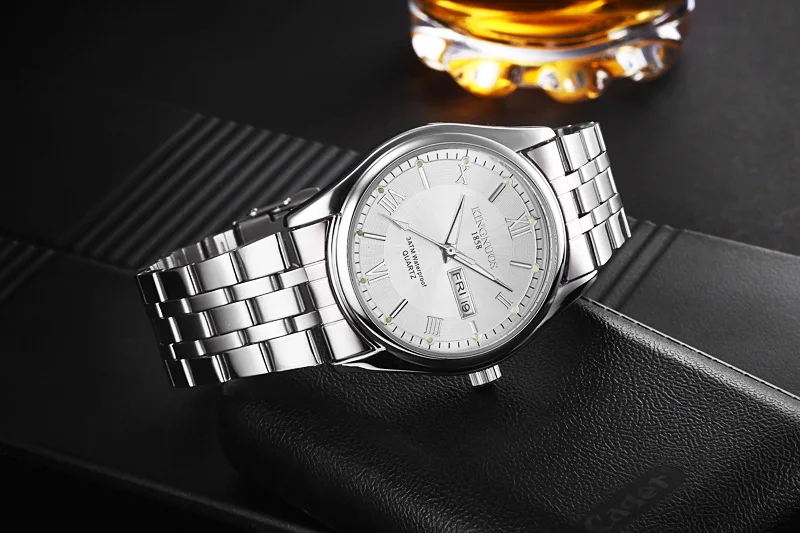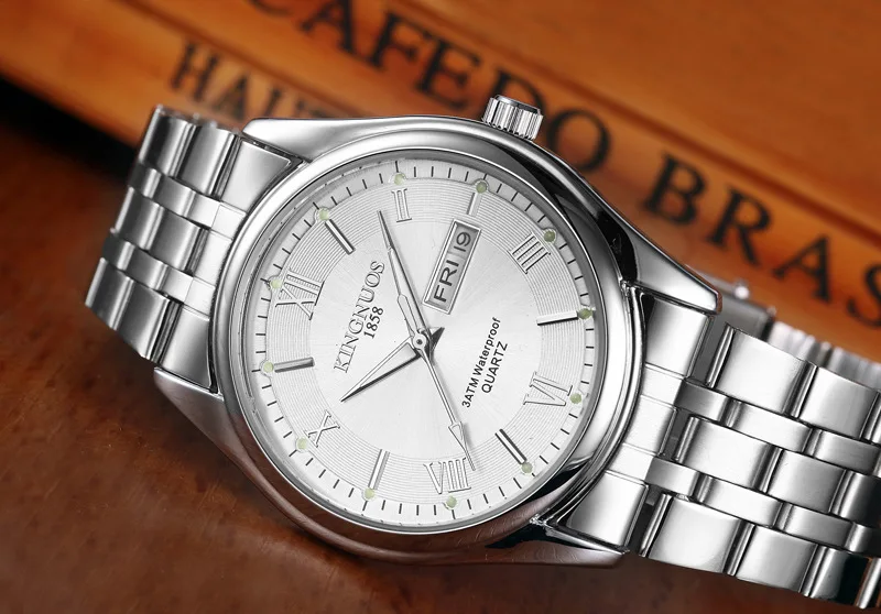 Men Watches 2023 Brand New Kingnuos Steel Waterproof Quartz Wristwatch for Men Saat Date Week Display Luminous Hour Reloj Hombre