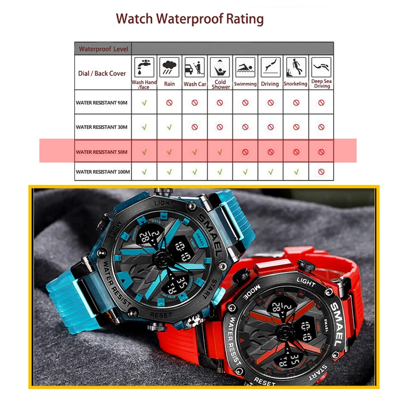 - Water Resisitant Watches: Digital Watch LED 50m Waterproof
