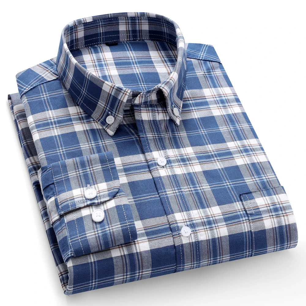 Men’s Classic Vertical Striped & Plaid Button-Up Oxford Dress Shirt, 100% Cotton Formal Business Wear for Spring and Fall Season sinsa store