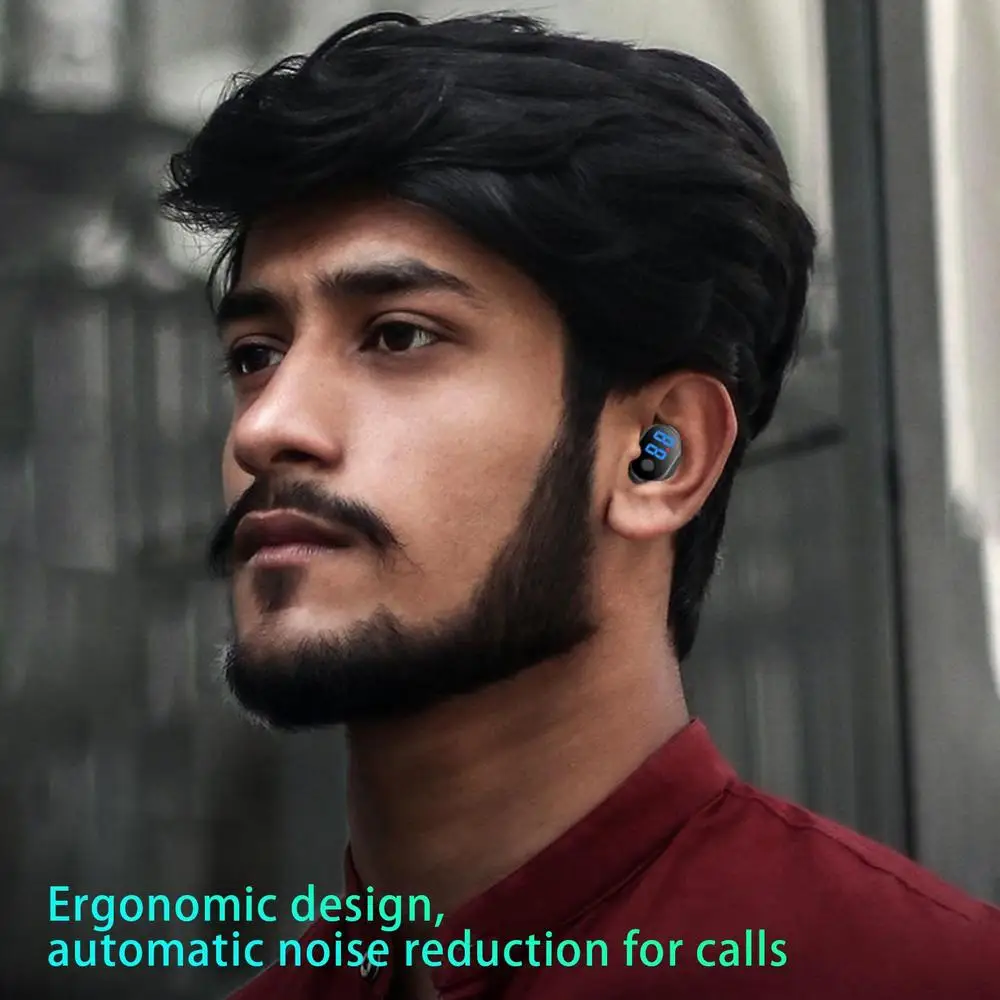 4.【LED Digital Headphones】Wireless mini invisible earbuds have an LED screen power display, allowing you to see the power usage of