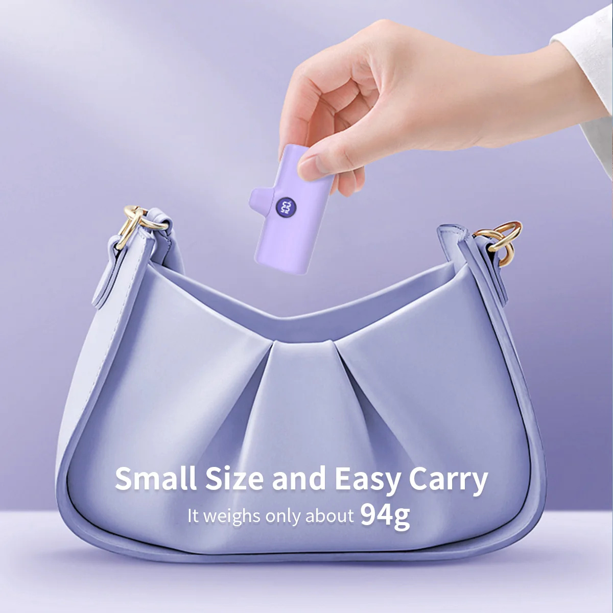 The compact size makes it easy to carry in a pocket. The attached lifting rope allows the power bank to be hung on the bag.