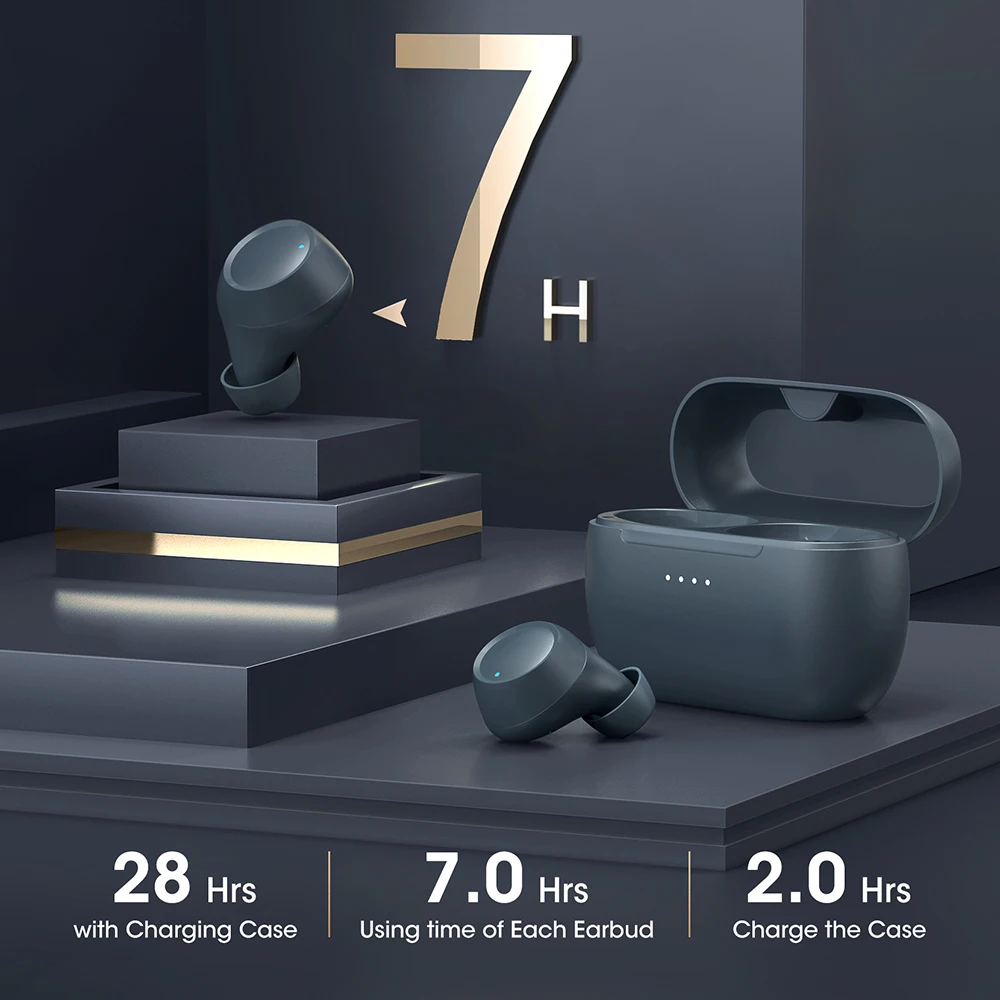 Apart from the USB-C fast charge, the charging case additionally supports wireless charging, with the inconvenience to hunt for a charging cable forever gone – relax and enjoy effective and efficient high charging speeds. Each bud will last for 7 hours with the case providing an extra 21 hours, and 28 hours use time in total for the whole day.