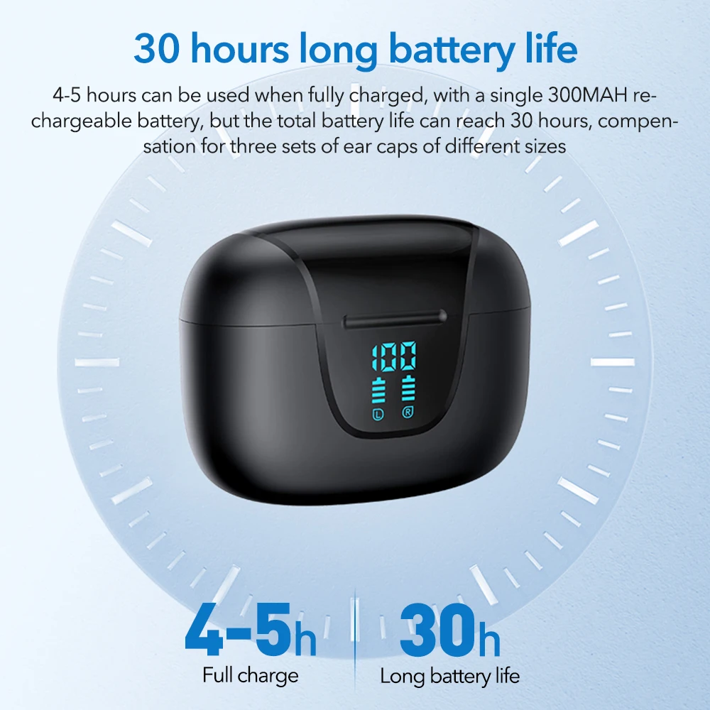 【Auto-Pair & LED Display】:After the initial connection is completed,when you use it again,just take the headset out of the charging box,the headset will automatically turn on,and the connection with the mobile phone will be completed automatically.After returning the earphones to the charging case,the LED of the charging case reads the remaining amount of earphones.The multi-function button of the high-sensitivity touch sensor can perform various operations with a single click