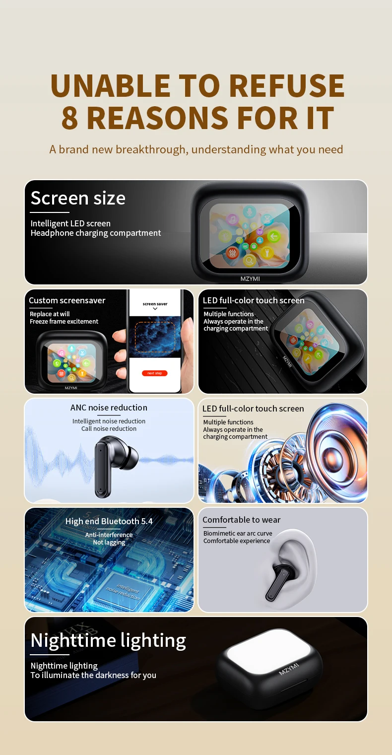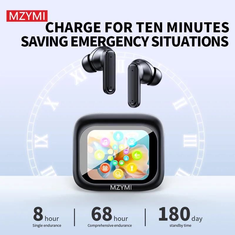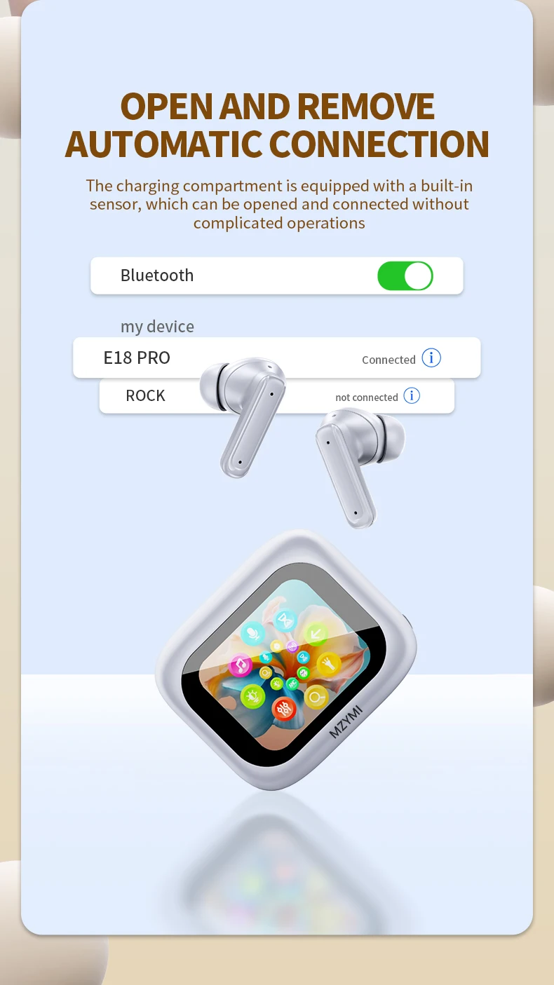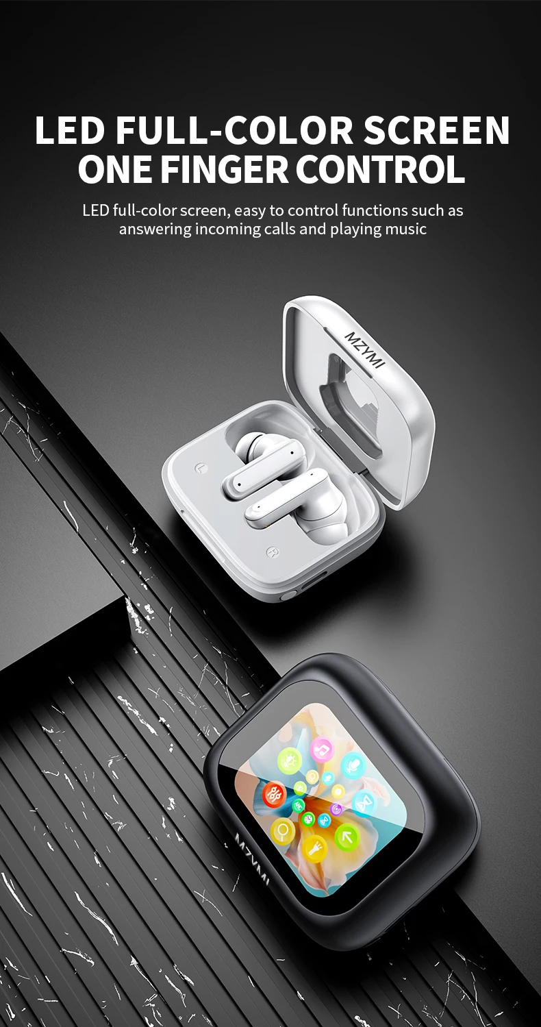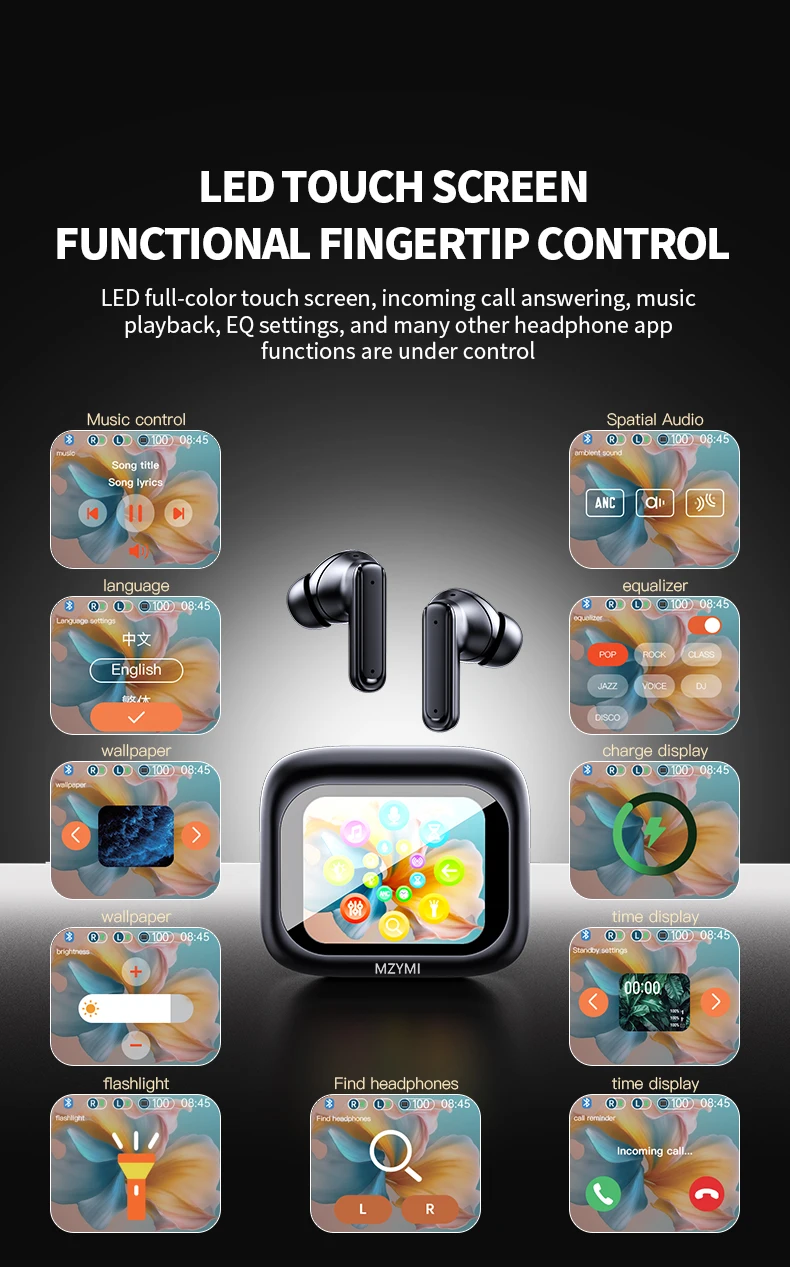 MZYMI Wireless Earbuds E18 pro Bluetooth5.4 Touch Screen ANC Earphone TWS Active Noise Cancelling Headphone With Mic And Led Display Waterproof Sports Headset With Charging Case For Android iOS