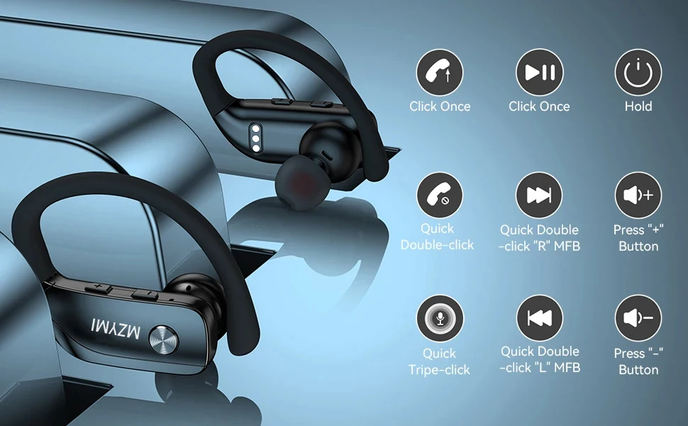 MZYMI Earhook T16 Sports Wireless Headphones Hifi Stereo Sound Bluetooth Earphones TWS Earbuds In Ear Headest With Mic Wireless Bluetooth Headset For Phone