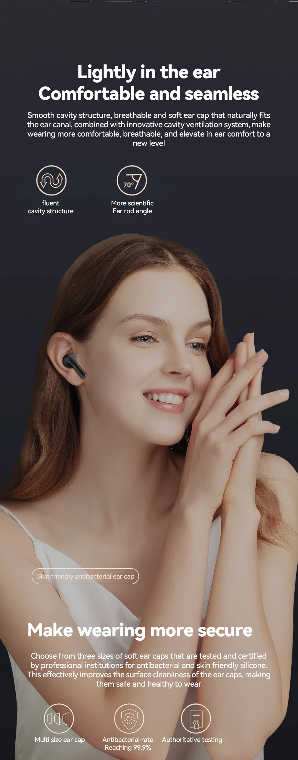 Bluetooth earbuds adapting in-ear design and the composite diaphragm moving coil unit make the sound full and thick, with a natural sense of hearing, restoring the authenticity of the audio and the dynamics of the sound. Feels like hearing on the scene, providing a realistic sound for you.