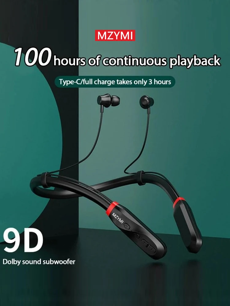MZYMI i35 Neckband Bluetooth Earphones 200 Hours play Wireless Headphones Noise Reduction Earbuds Stereo Sport Earphones IPX5 Waterproof Headet With Charging Case
