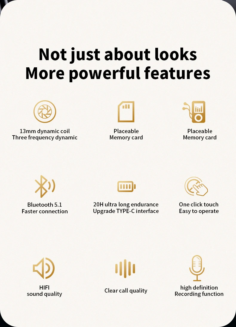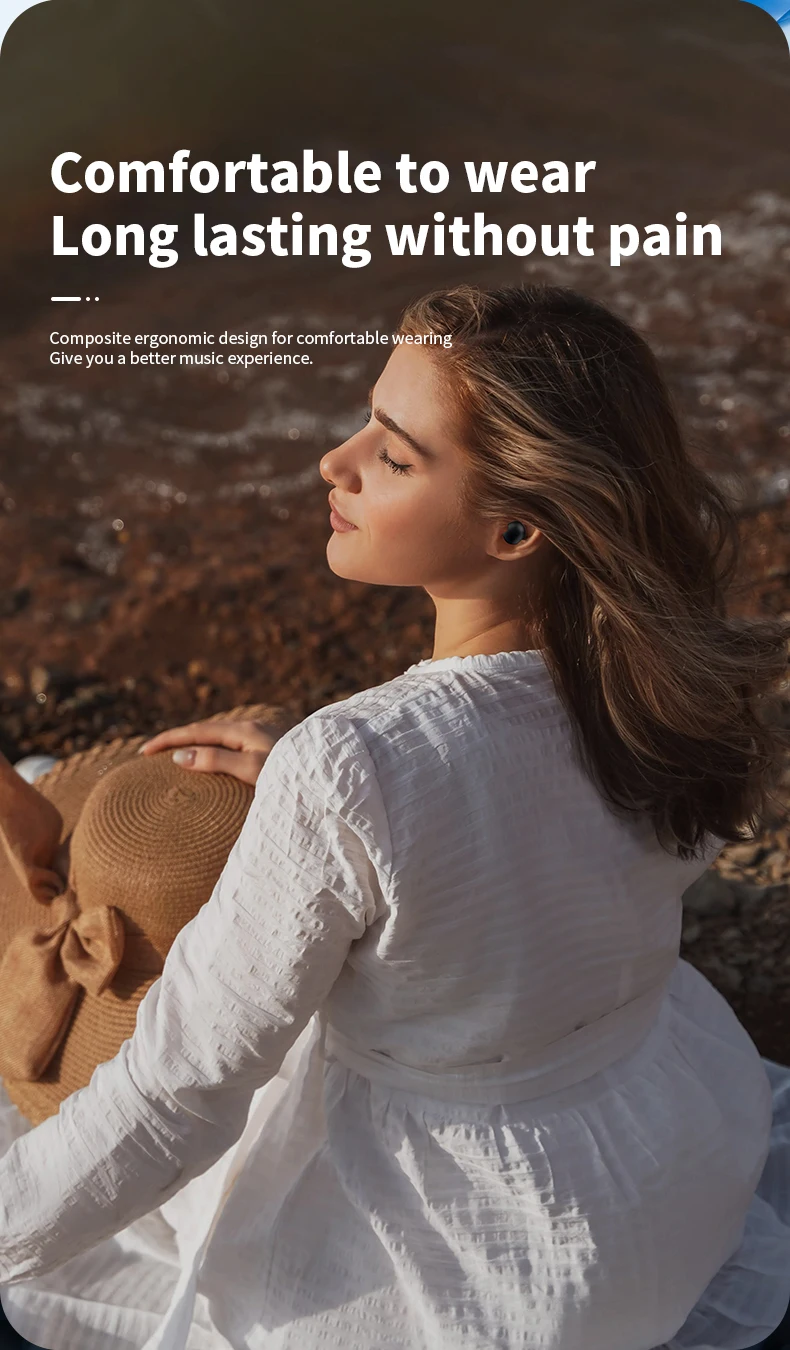 Bluetooth earbuds adapting in-ear design and the composite diaphragm moving coil unit make the sound full and thick, with a natural sense of hearing, restoring the authenticity of the audio and the dynamics of the sound. Feels like hearing on the scene, providing a realistic sound for you.