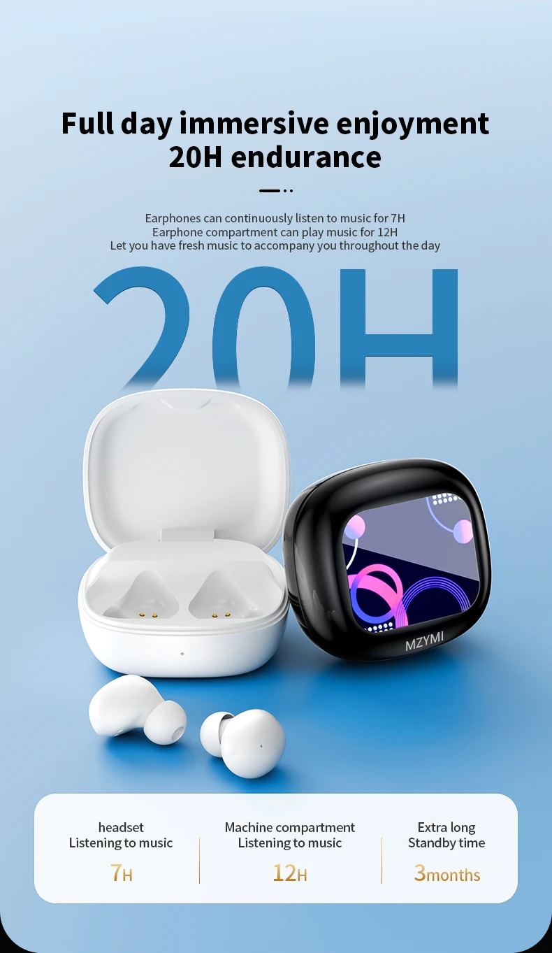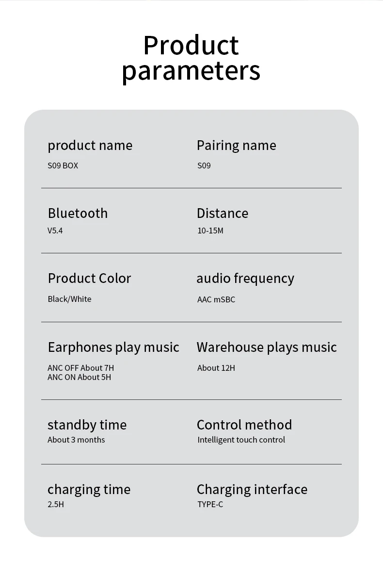 MZYMI S09 ANC Bluetooth5.4 Earbuds TWS Wireless In Ear Headphone Touch Screen Noise Cancelling Headset With Mic For Android iOS Sport Gaming Earphone With Charging Case