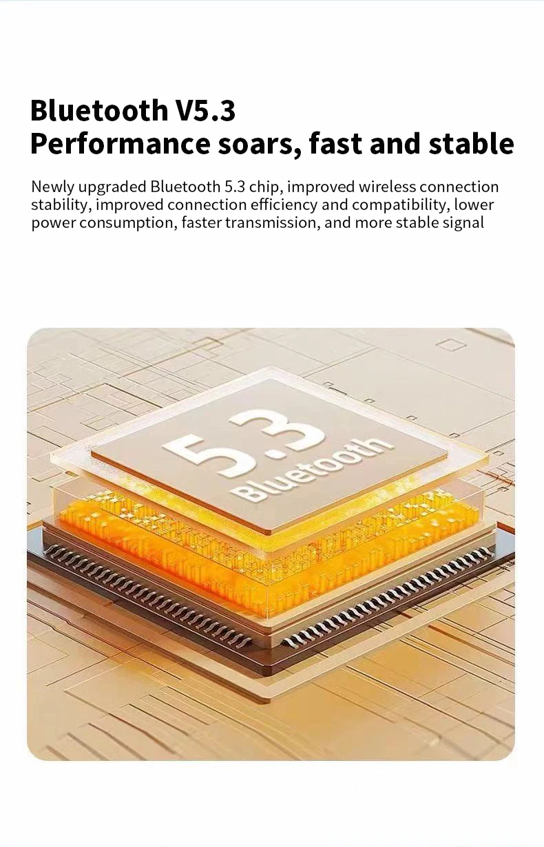 Adopt the advanced Bluetooth 5.3 technology. Which greatly improve the transmission speed and providing you with a low-latency listening experience.bluetooth earbuds adopt bluetooth technology, which can offer a clear and smooth connection, allowing you to hear crystal clear calls like you are communicating face to face with others. Don’t worry about interruptions on listing to music and calling.