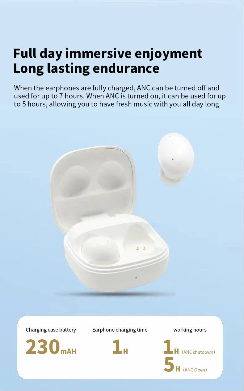 ANC-Active Noise Cancelling Dual Noise Reduction (ANC Active Noise Cancelling + ENC Environmental Noise Cancelling). So that a noisy environment has a quiet world,listen to wonderful singing, and has clear telephone communication.