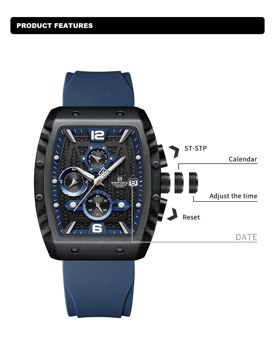 - Feature: Shock Resistant,Auto Date,Chronograph,Water Resistant