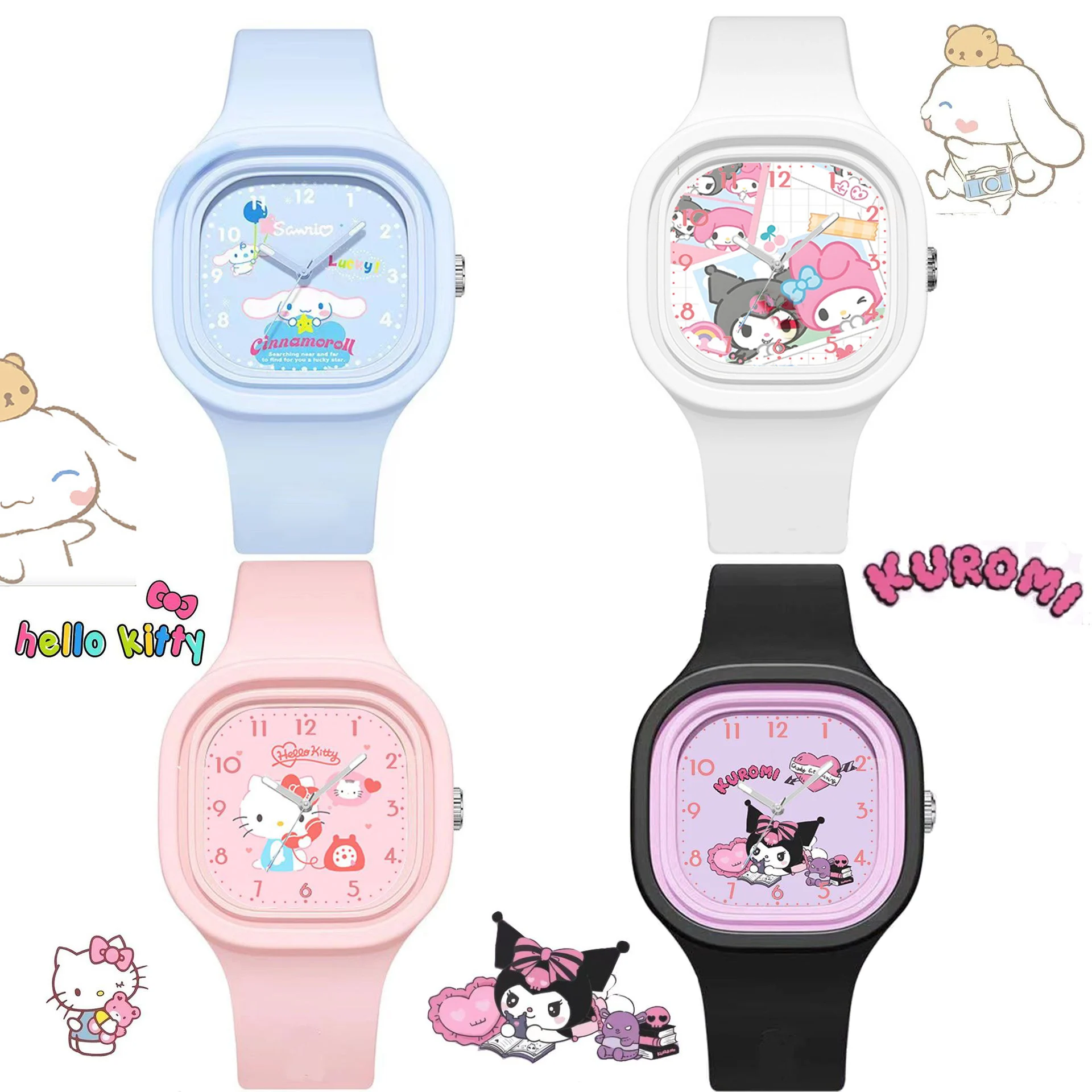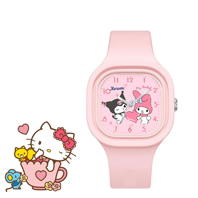 Fashion Cartoon Pattern Children Watches for Girls Hello Kitty Kids Watch Kuromi Cartoon Silica Gel Watchband Quartz Clock Gift