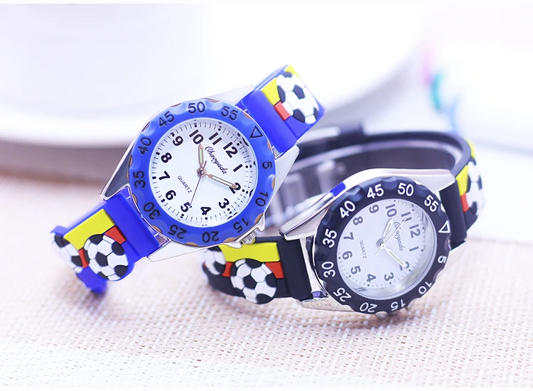 New Children’s Boys Gilrs 3D Cool Football Silicone Strap Watches Students 3-12ages Kids Football Match Sports Waterproof Watch