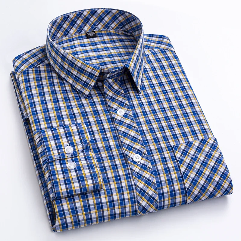 New Plaid Long Sleeve Dress Shirts For Man Cotton Classic Checked England Style Turn Down Collar M-8XL Men’s Clothes Shirt Soft