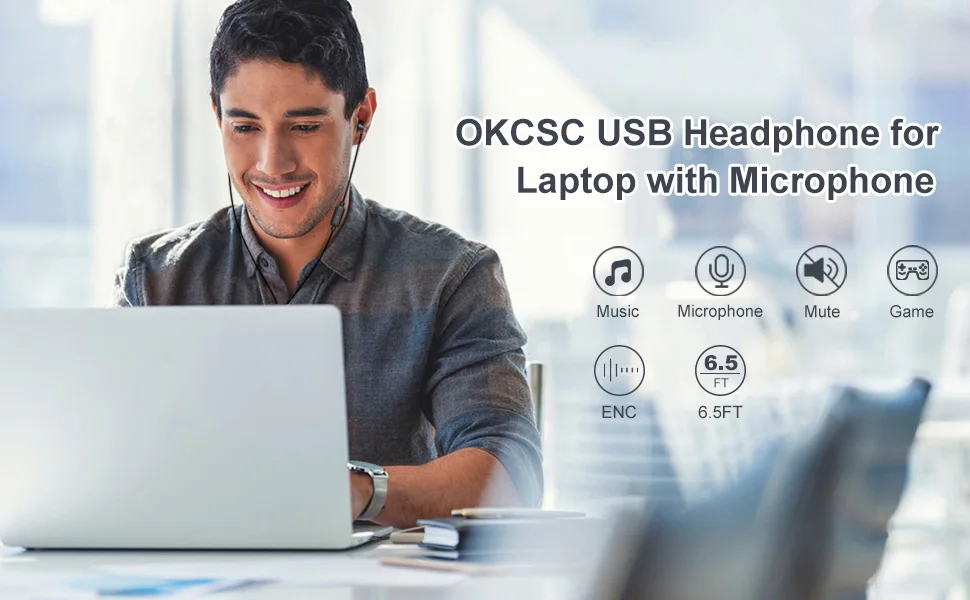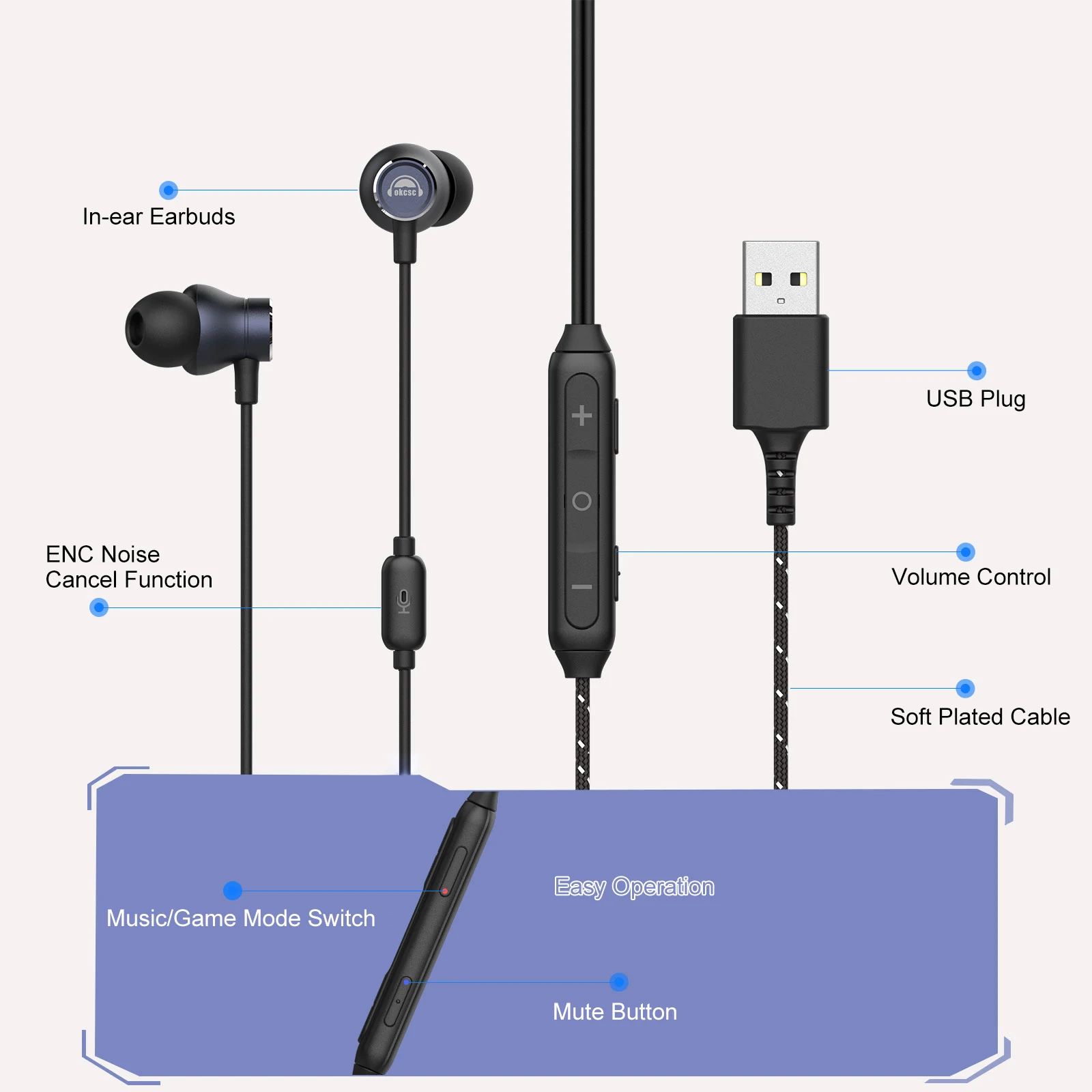 OKCSC GB50 USB Headphone for PC Laptop Wired Earbuds with Microphone