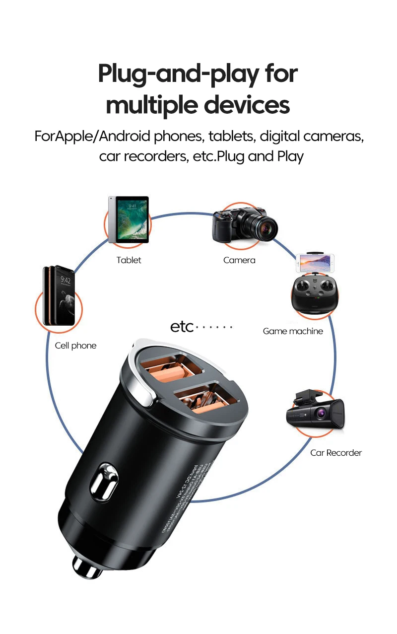 - Feature 3: USB Car Charger / Mini Car Charger / Charger in Car 3.1A