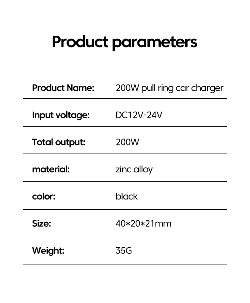 - Model Number: 200W Car Charger