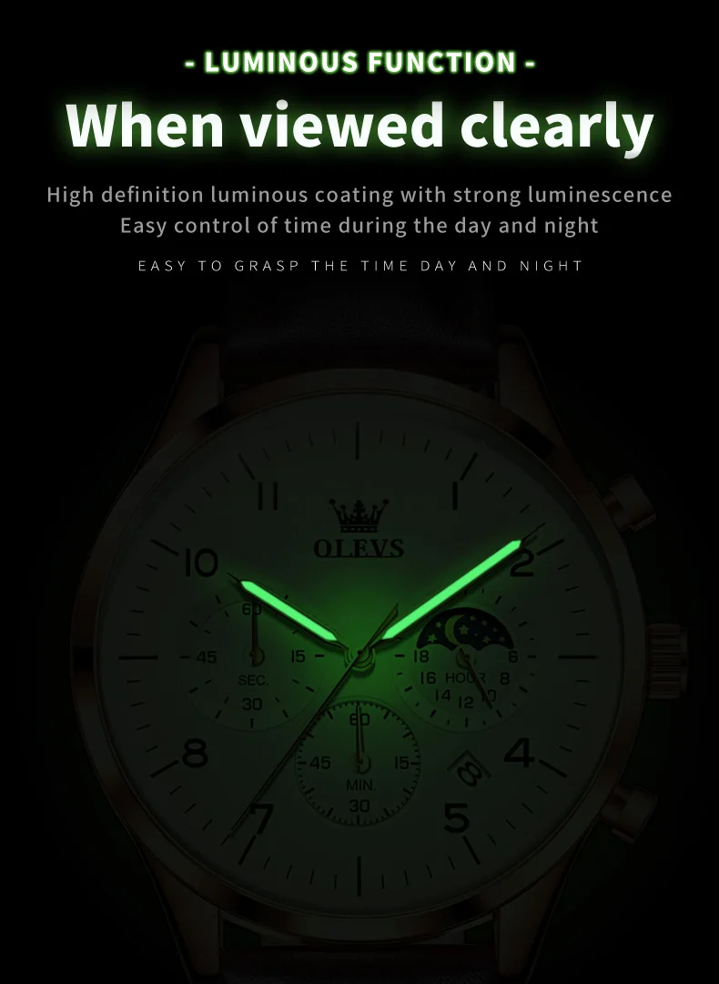 - Feature: Luminous,Chronograph,Complete Calendar,Moon Phase,Water Resistant
