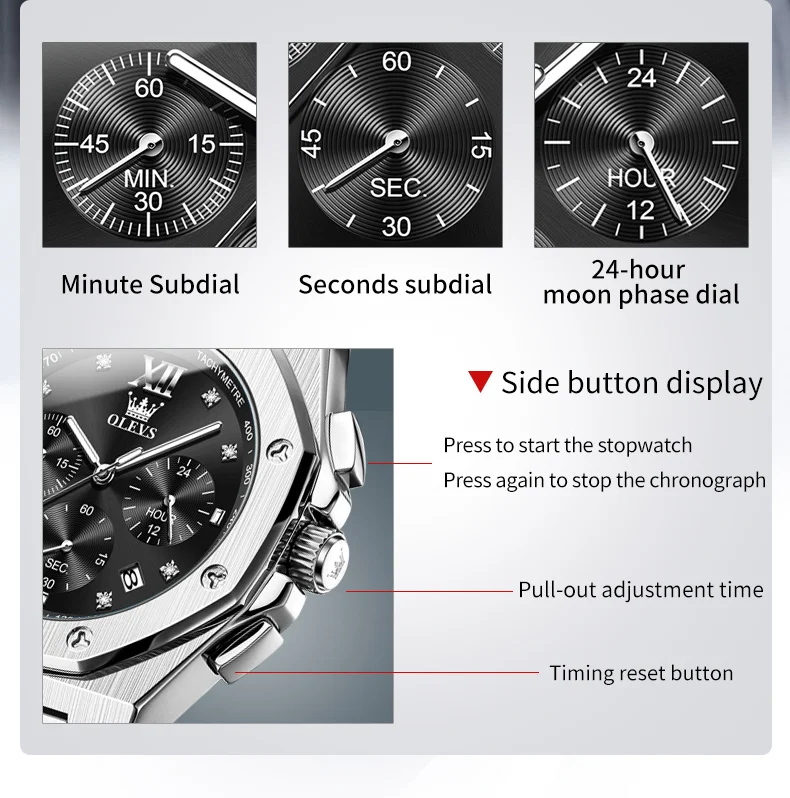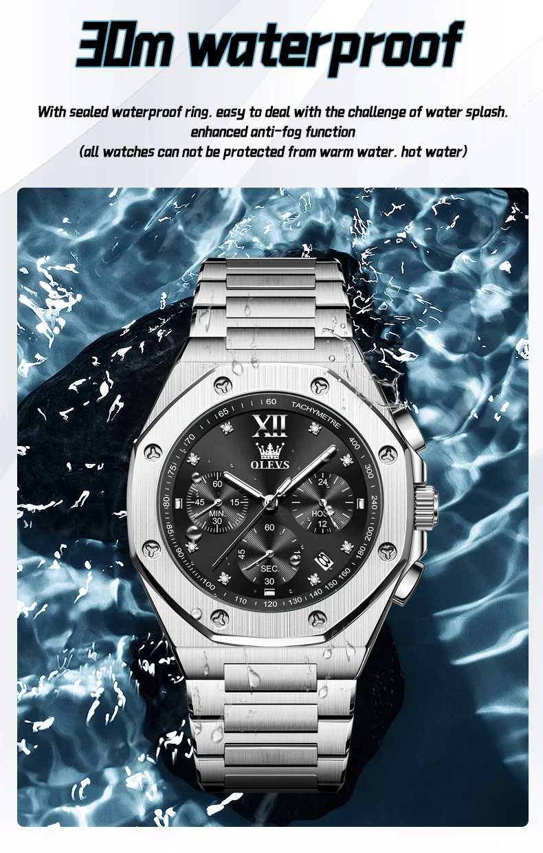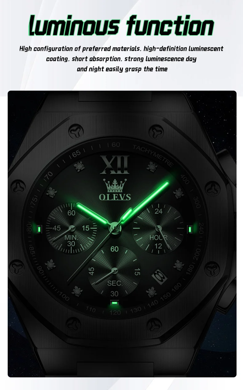 - Feature: Luminous,Chronograph,Complete Calendar,Water Resistant,swim,luminous hands