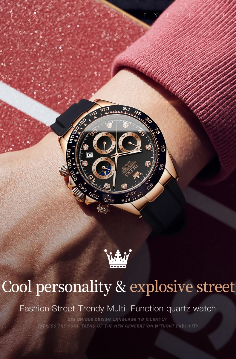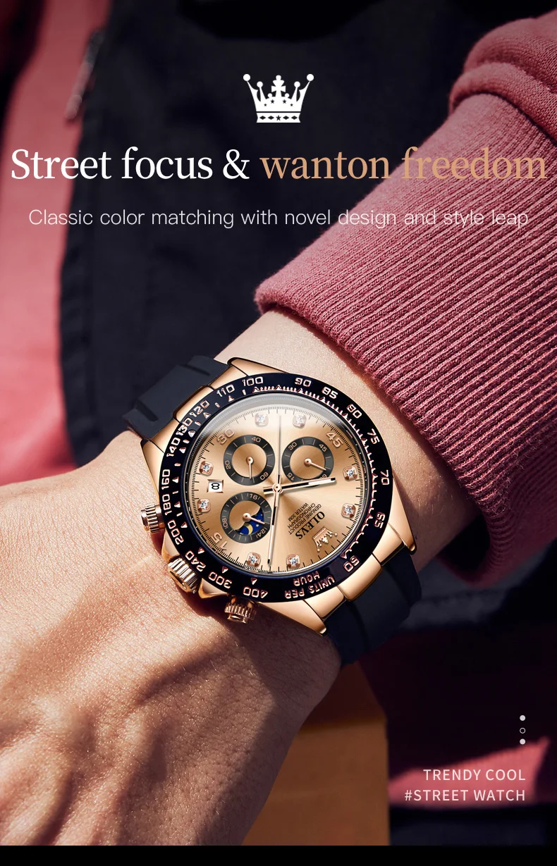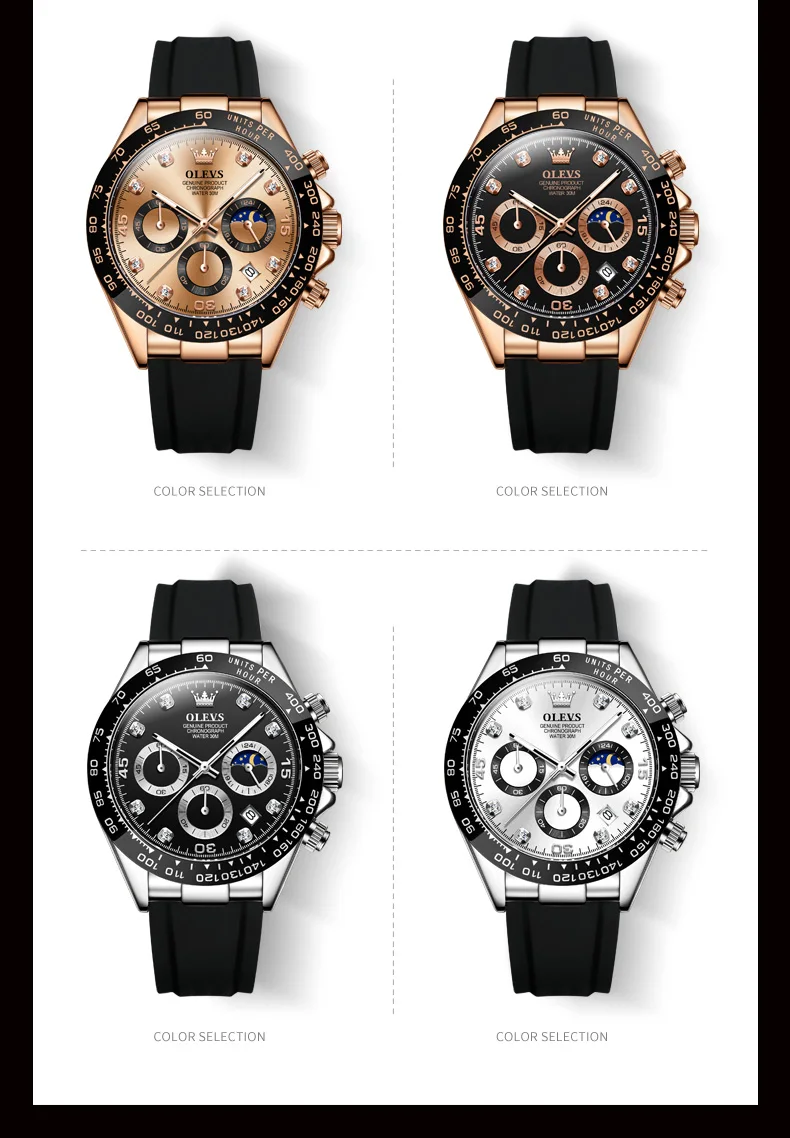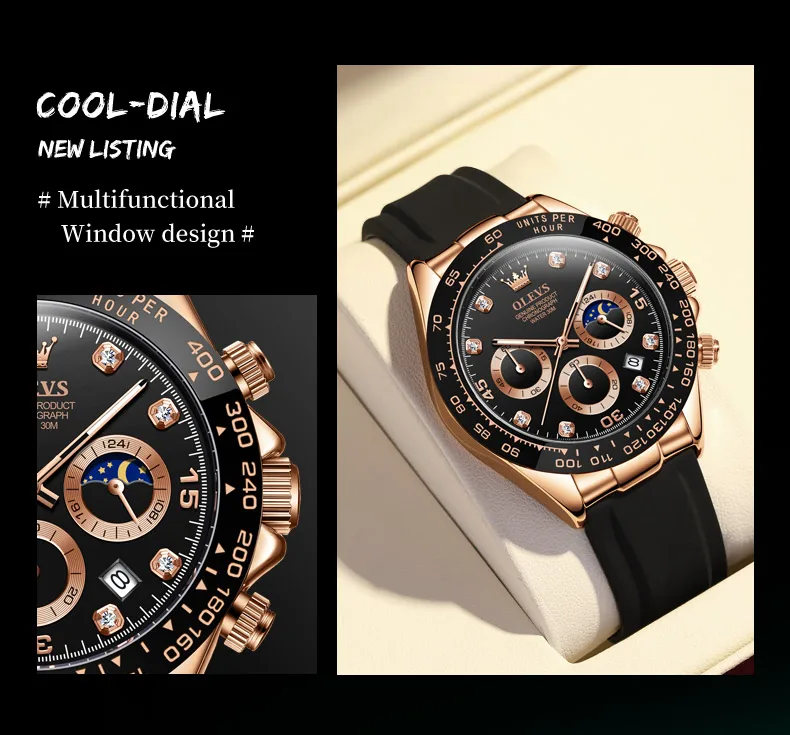 OLEVS Original Watch for Men Chronograph Calendar Analog Silicone Strap Wristwatch 41mm Hombres Reloj Men’s Sports Watch
