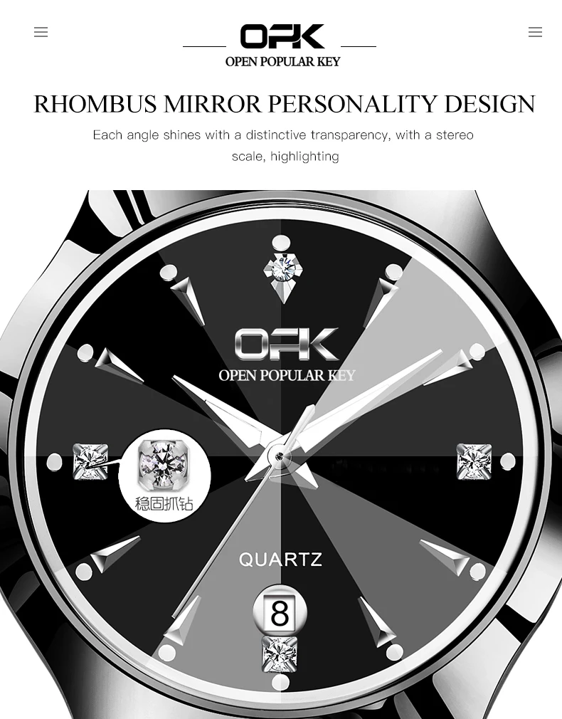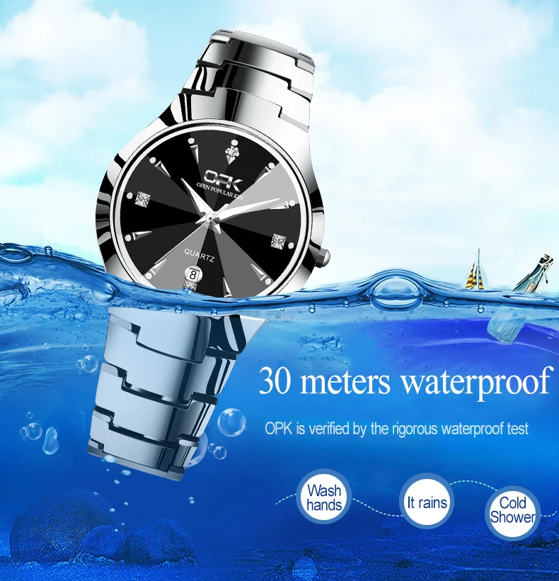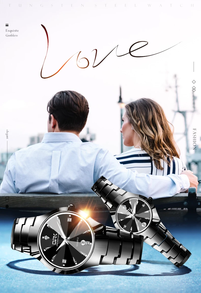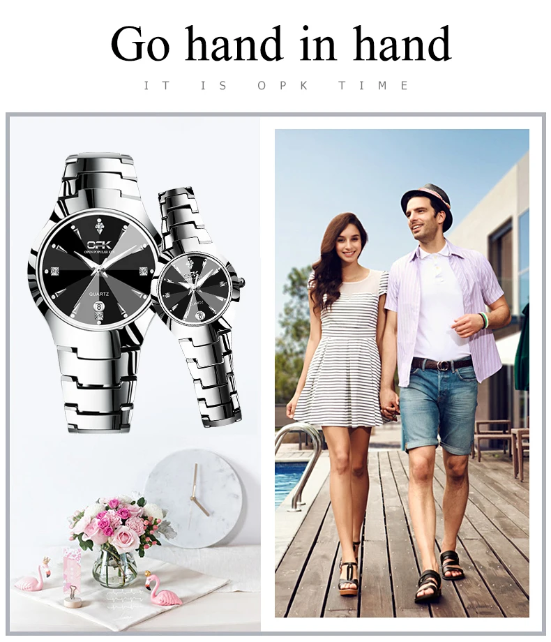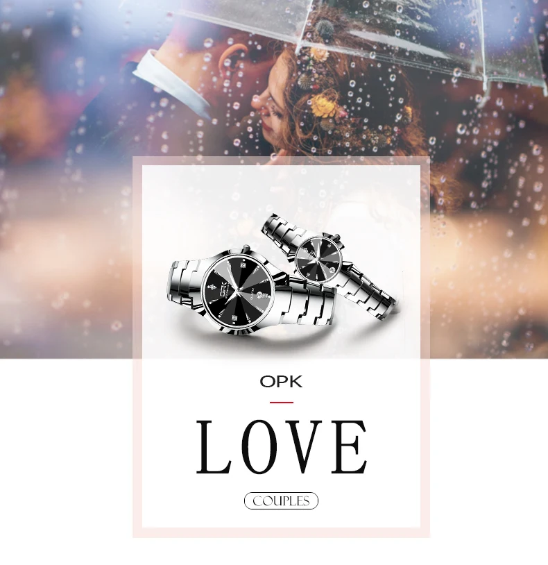 OPK 8105 Luxury Couple Watch Waterproof Luminous Calendar Stainless Steel Wristwatch Original Quartz Watches For Women And Men