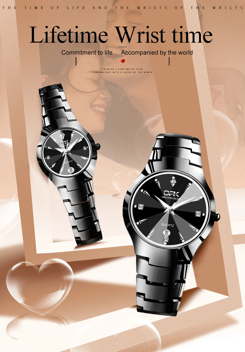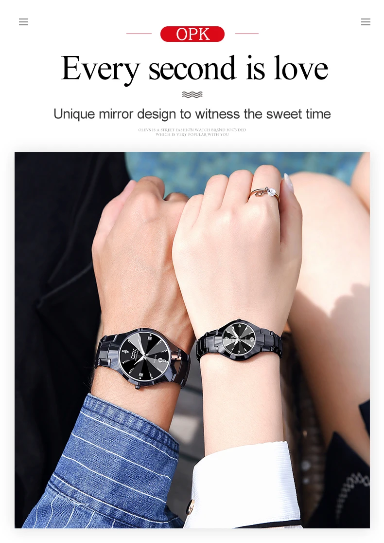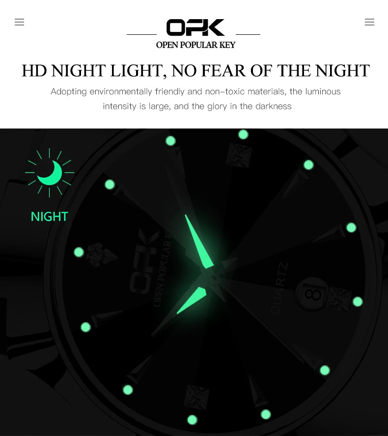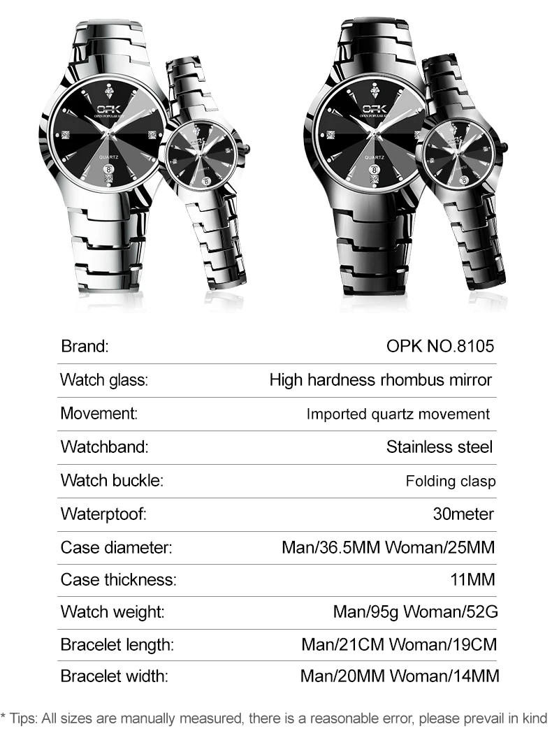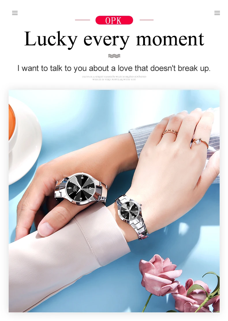 OPK 8105 Luxury Couple Watch Waterproof Luminous Calendar Stainless Steel Wristwatch Original Quartz Watches For Women And Men