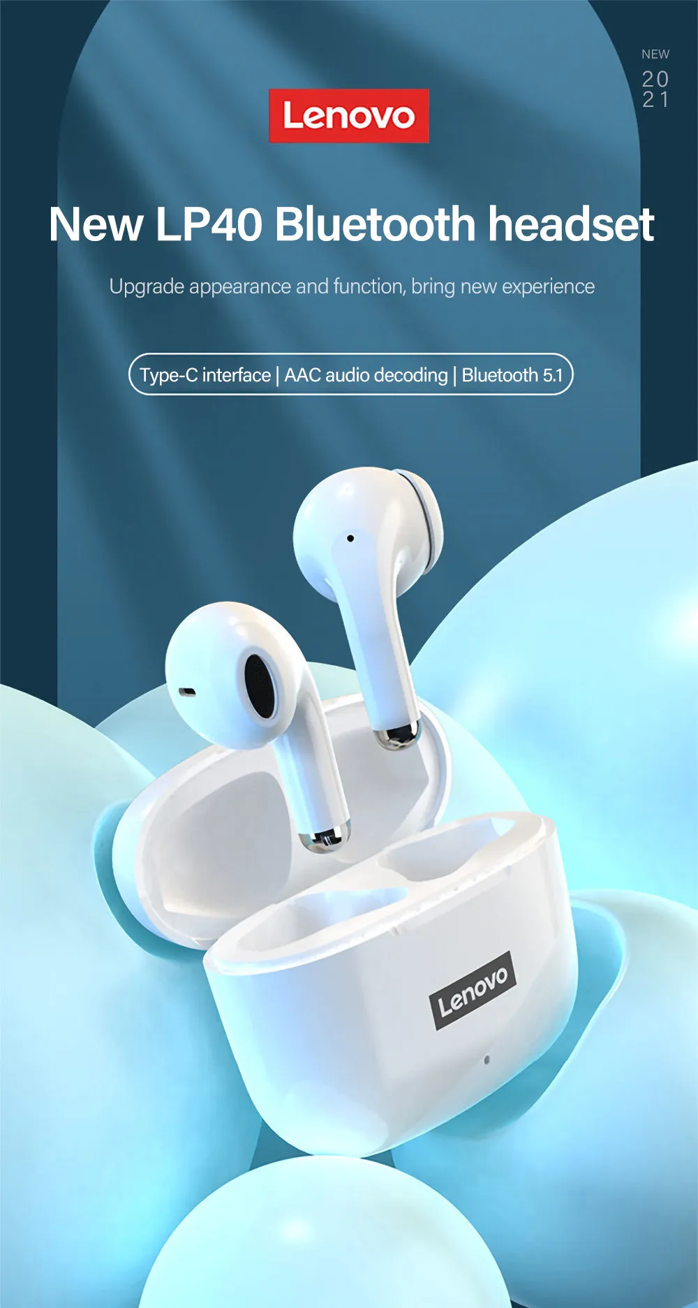 Original Lenovo LP40 LP40 Pro Bluetooth Earphones Wireless Earbuds Control Touch Headphones Long Standby Microphone Headset