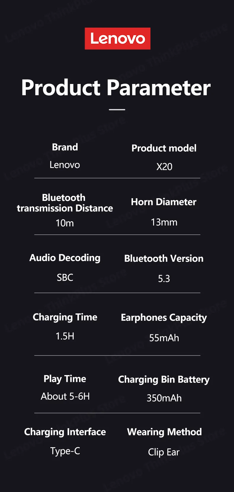 - name: Original Lenovo X20 Earphones Bluetooth 5.3