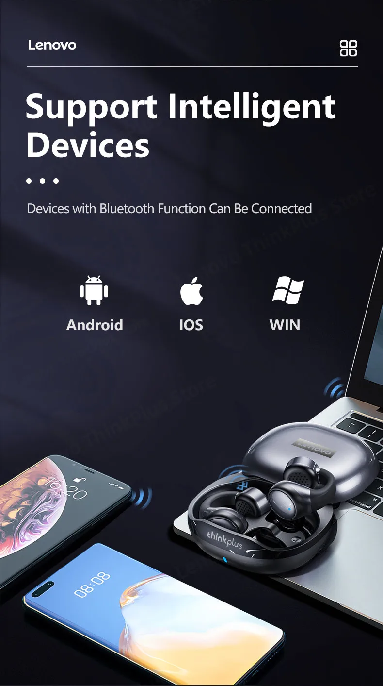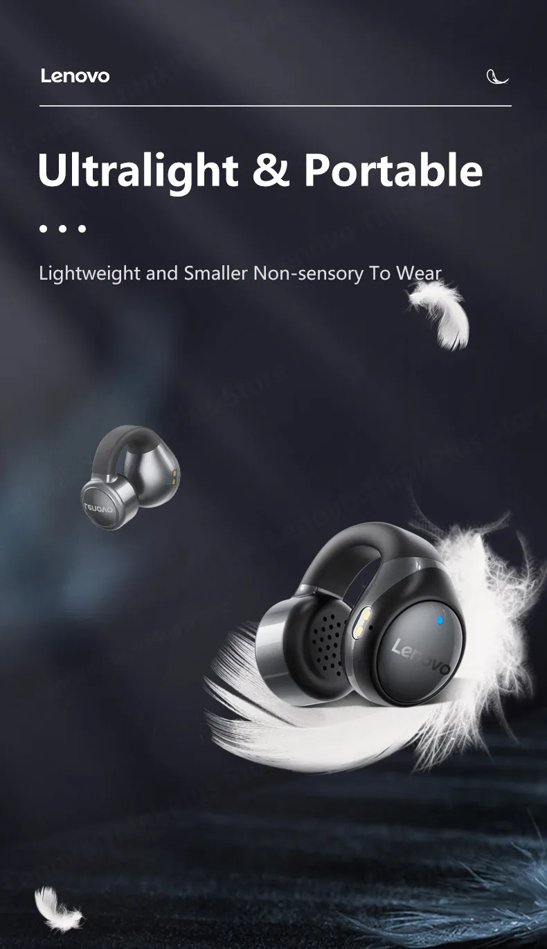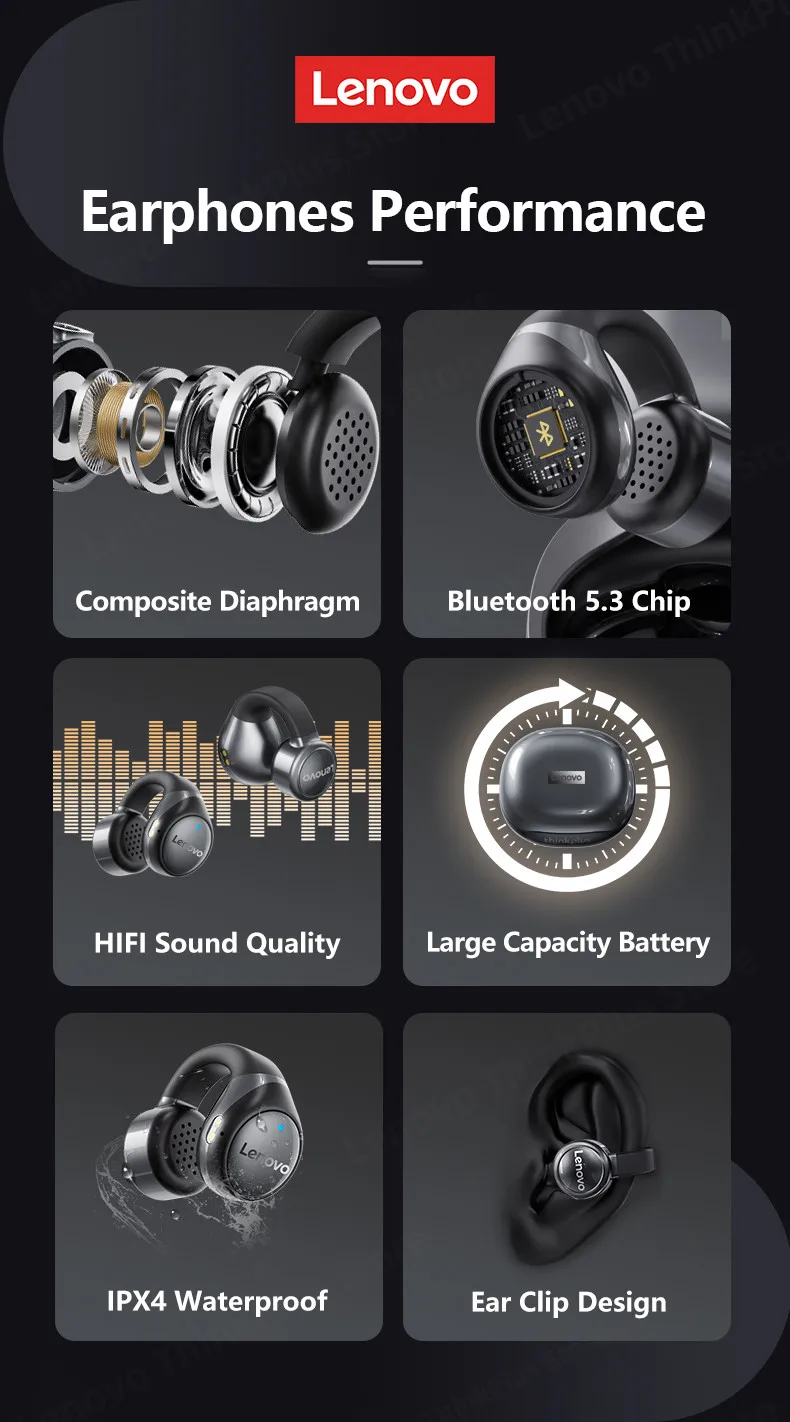 Lenovo X20 Earphones Bluetooth 5.3 Ear Clip Wireless Headphones