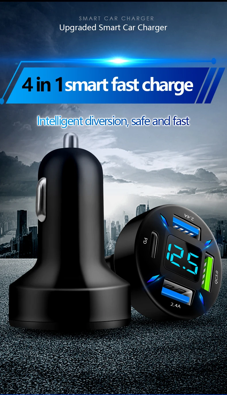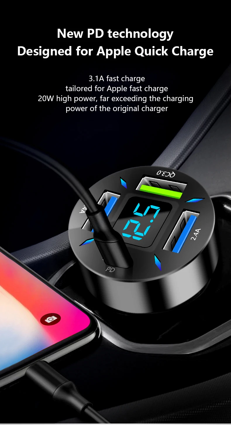 PD Quick Car Charger QC3.0 2.4A 4 Ports USB Fast Charging Car Adapter Cigarette Lighter Socket Splitter For iPhone Xiaomi sinsa