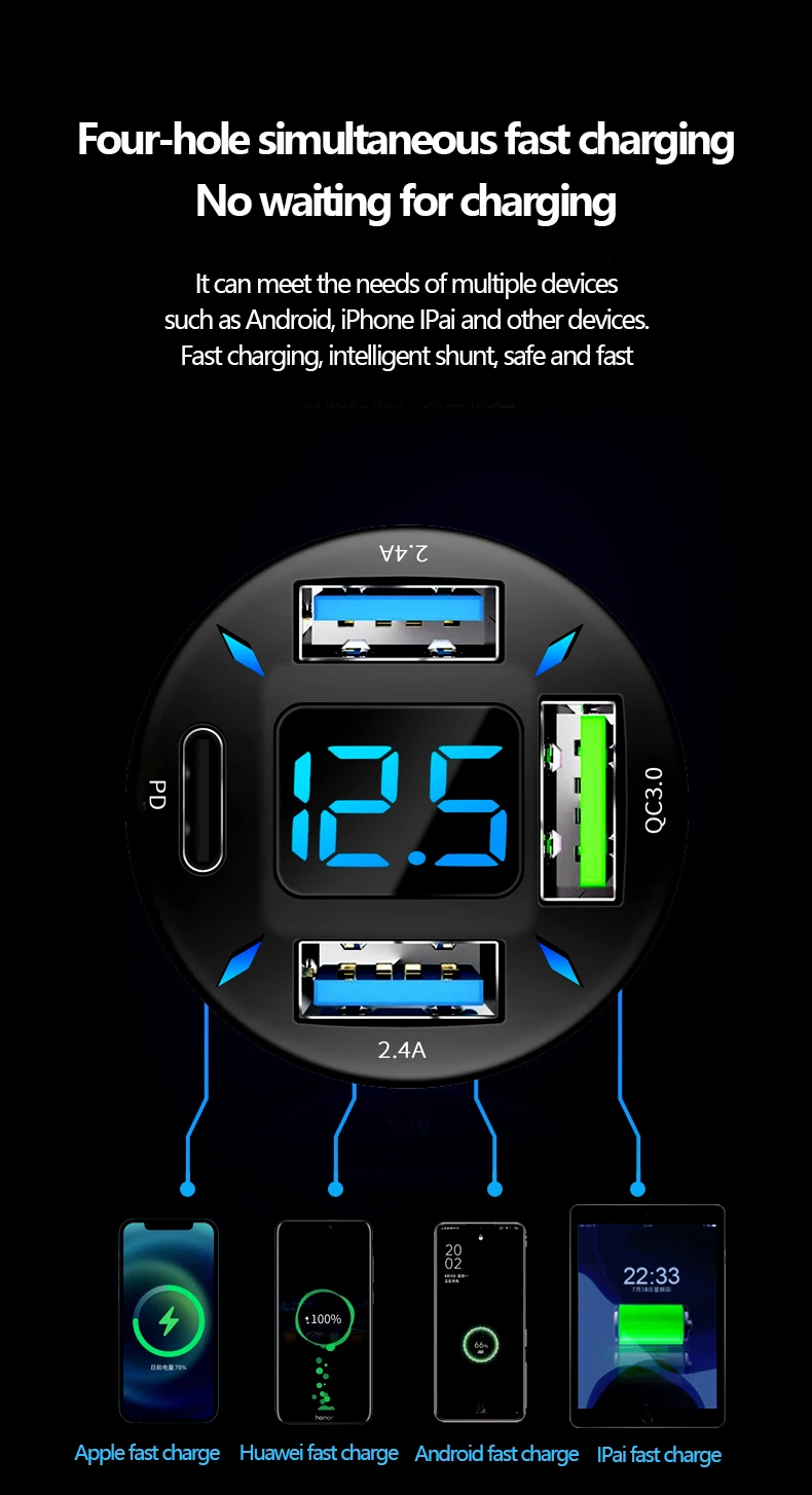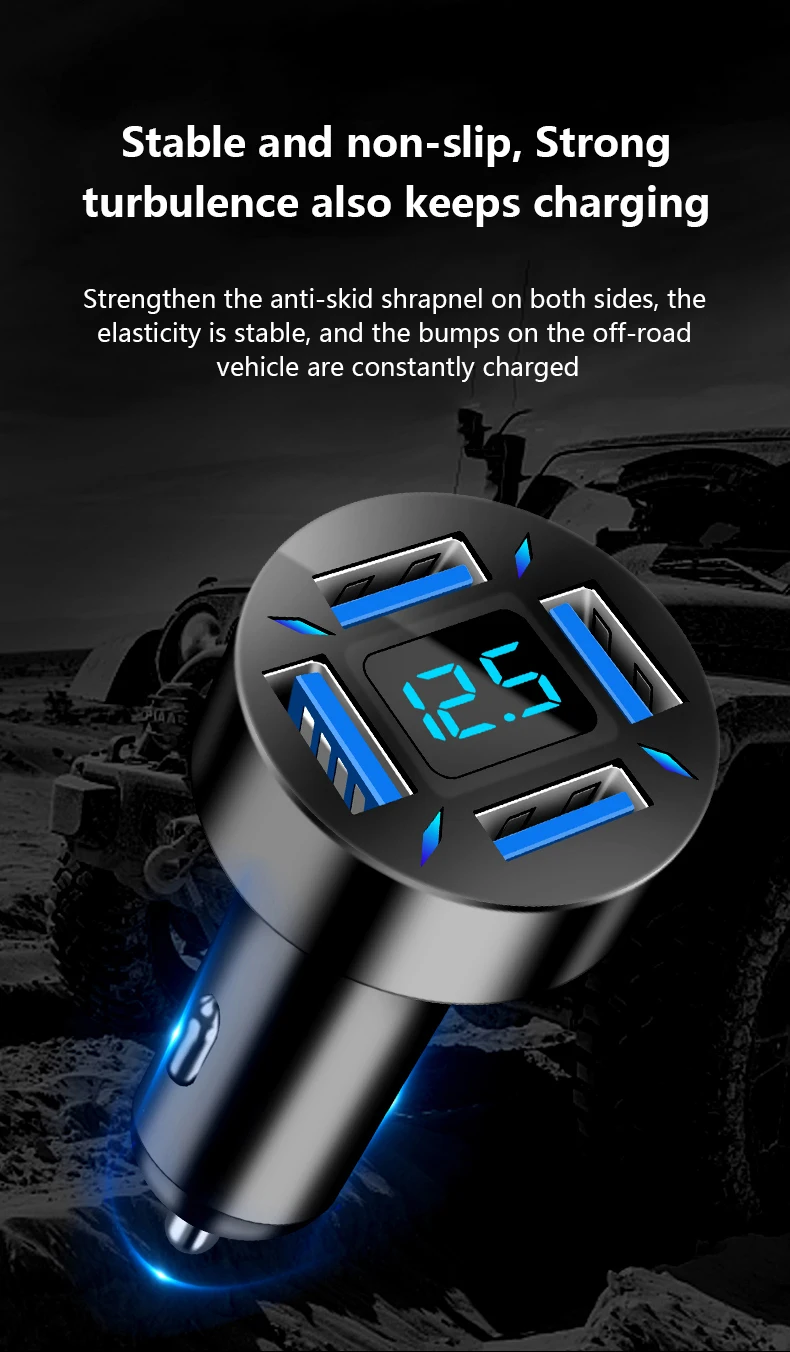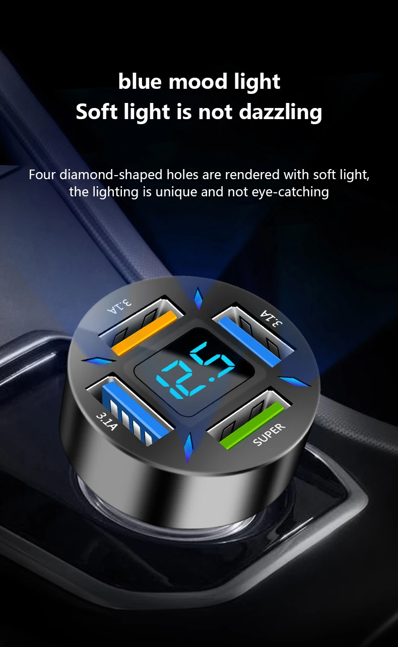 2. 4 USB supports simultaneous output with an indicator light, QC3.0 orange LED USB interface with fast charge.