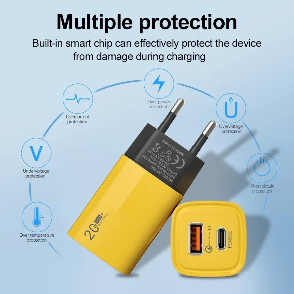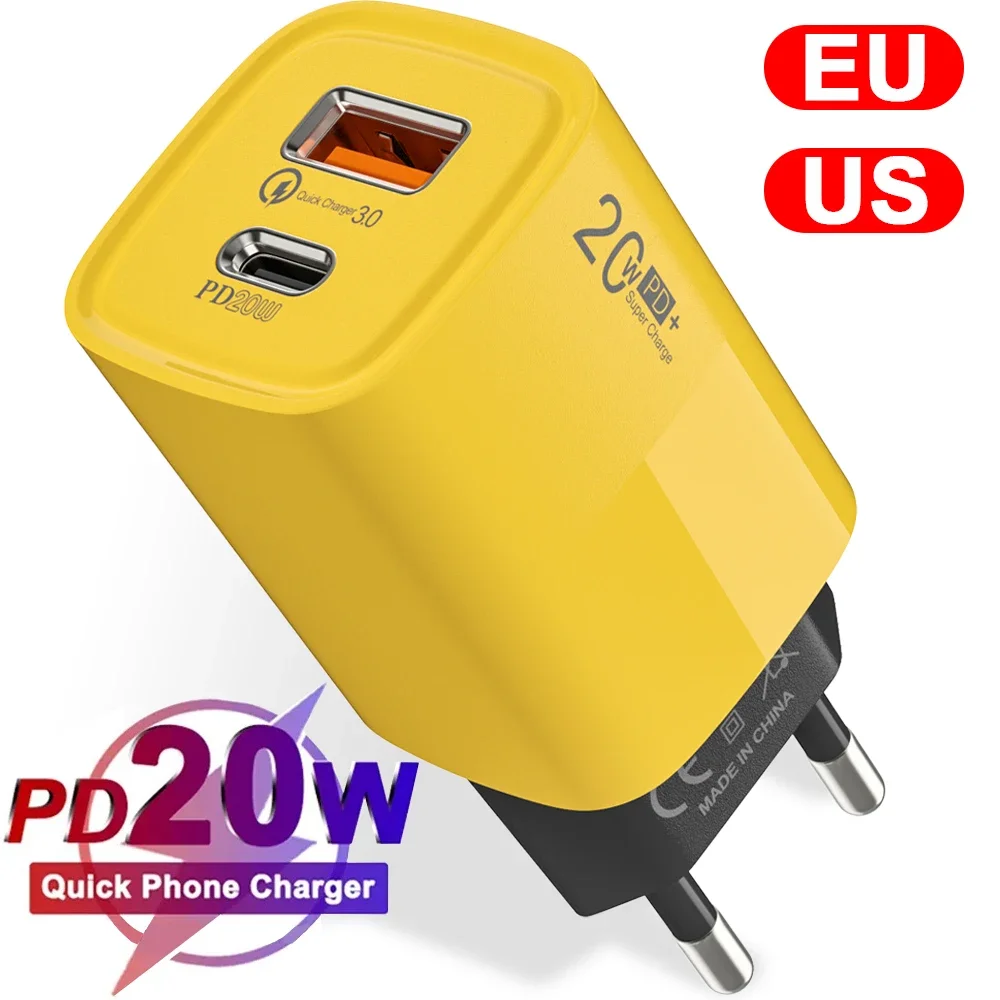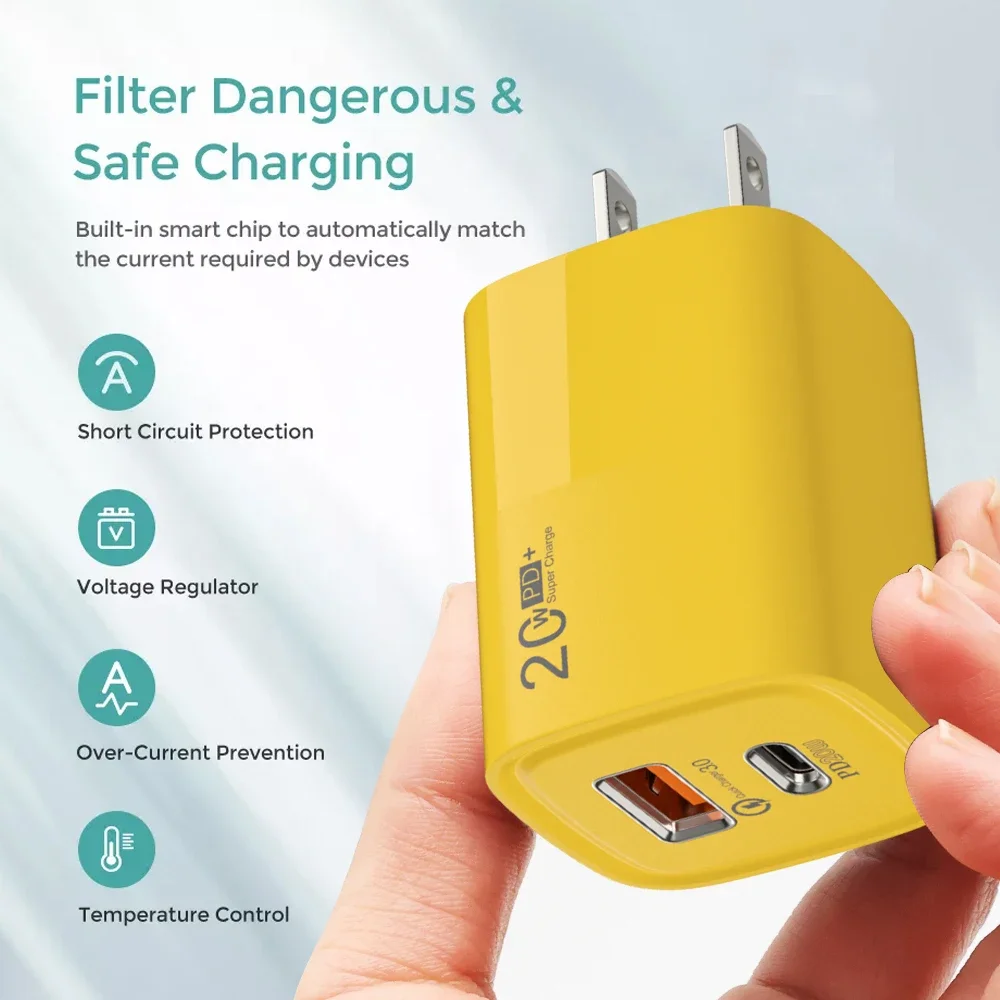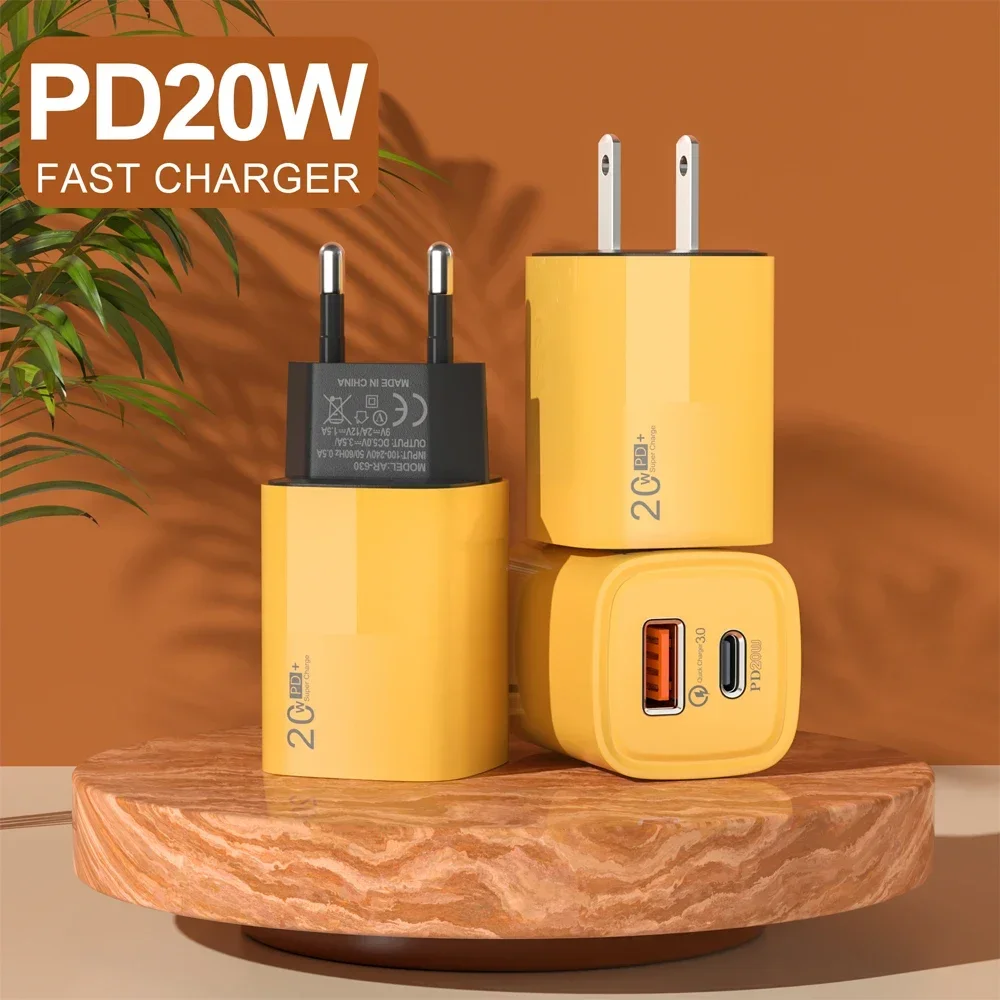 PD20W Type C Phone Chargers QC3.0 Fast Charging 2 Ports USB Wall Charger Adapter for For IPhone 15 Pro Max 14 13 Samsung