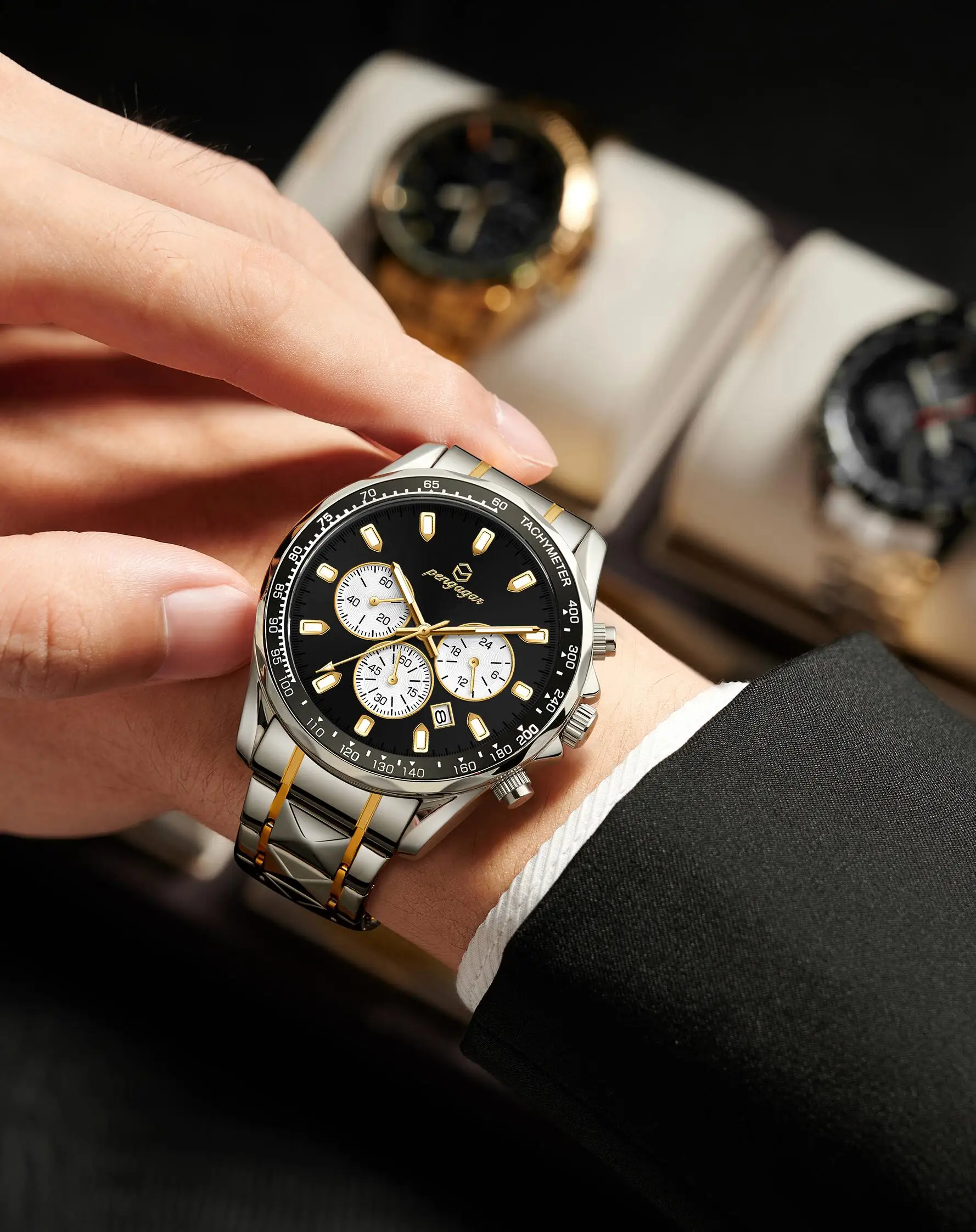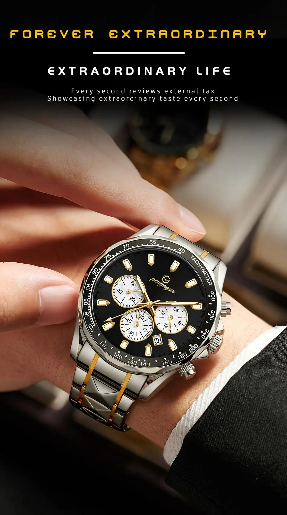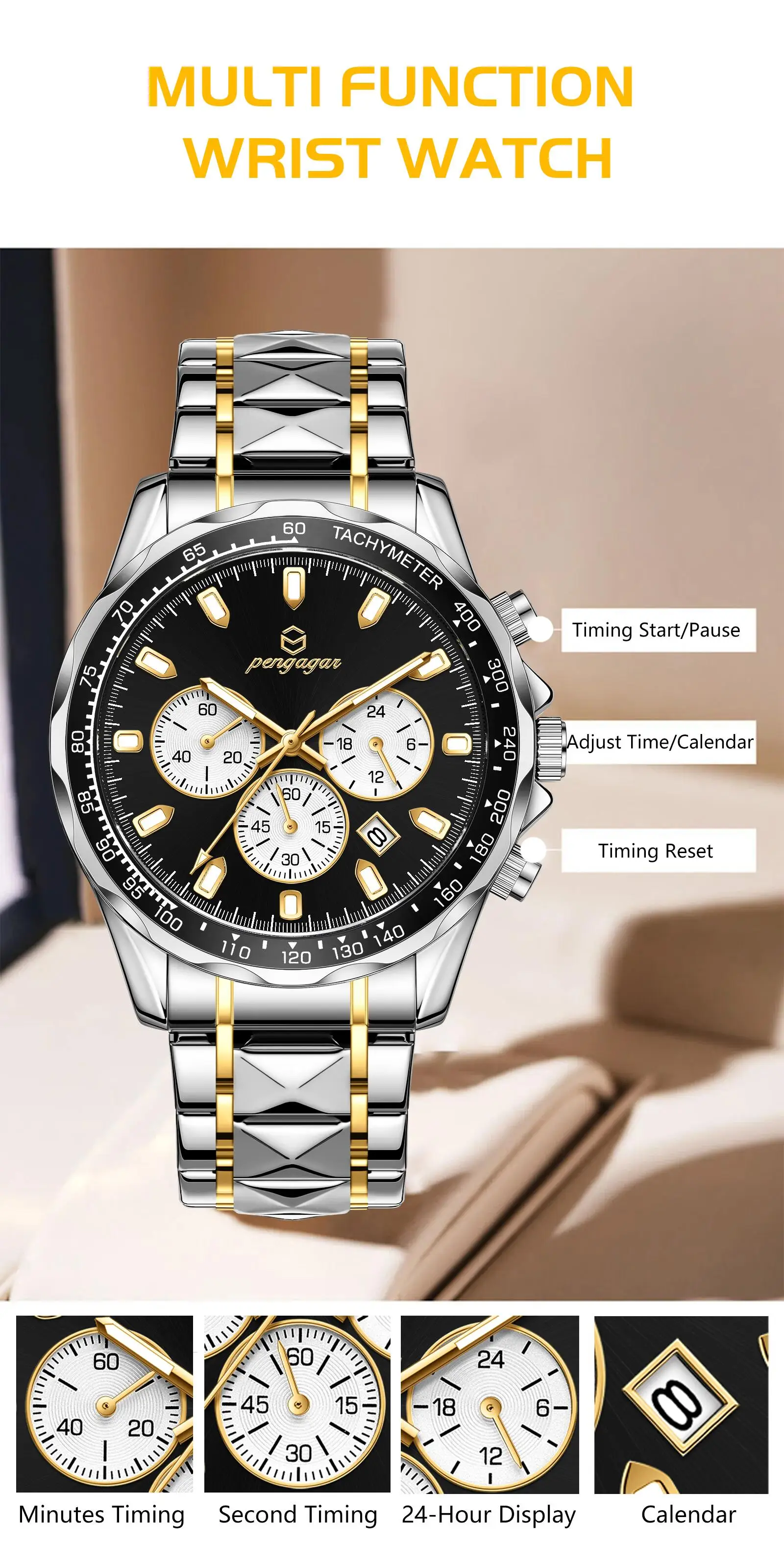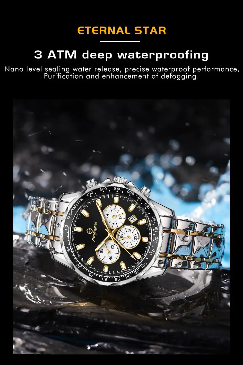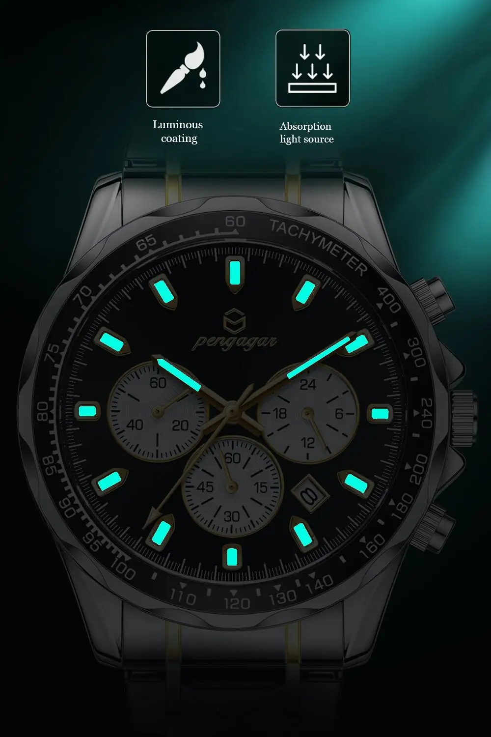 - Feature: STOP WATCH,Shock Resistant,Luminous,Auto Date,Chronograph,Complete Calendar,DIVER,Perpetual Calendar,Water Resistant,swim,luminous hands