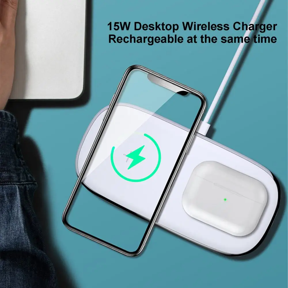 1.Efficient Charging: Experience seamless efficiency delivery with our wireless charger for phone, enabling up to 15W fast charging—place your device and earbuds atop, and witness efficient simultaneous charging.
